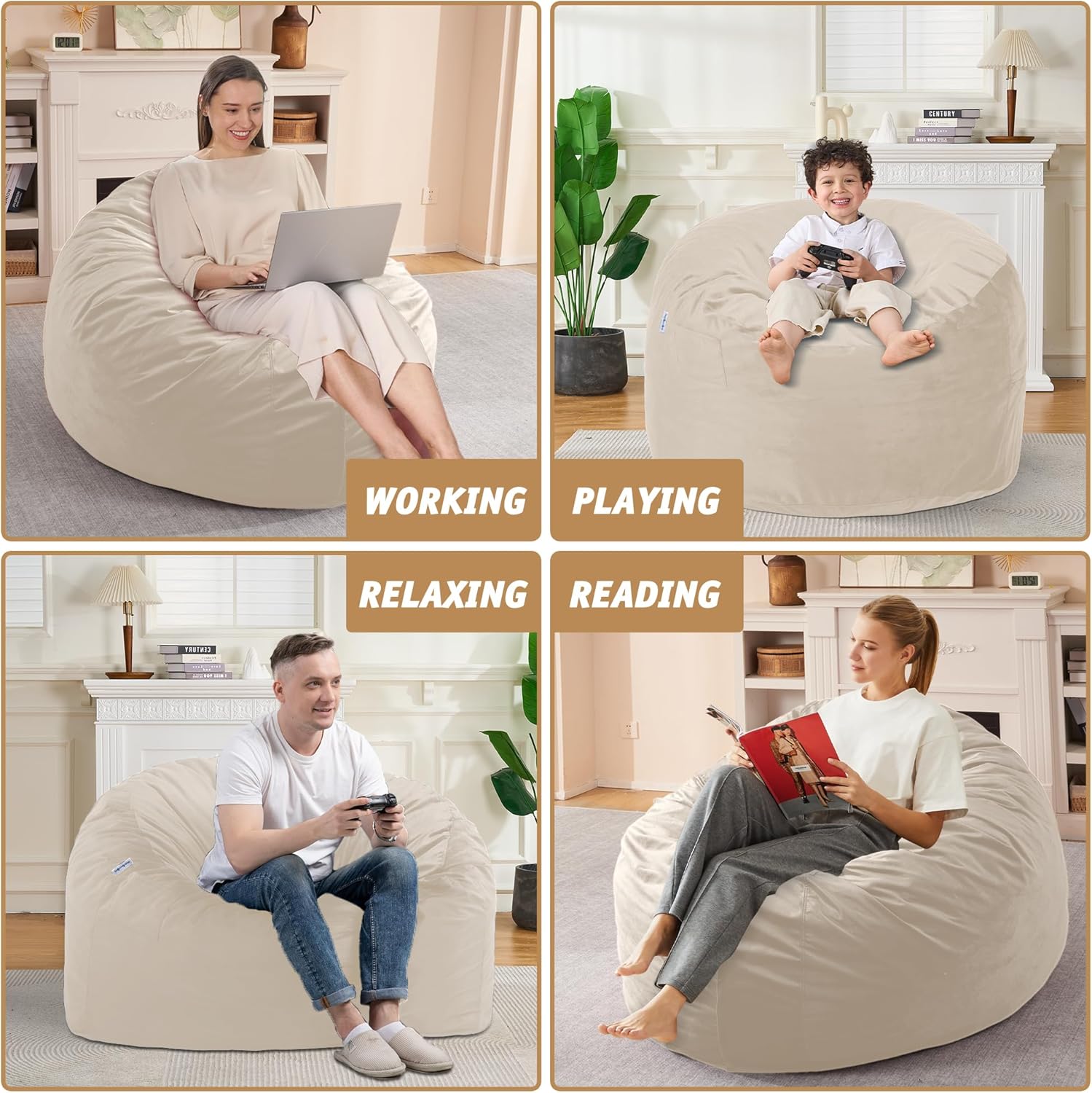 - 🎀【Fit for Whole Family & Multifunctional】3ft beanbag is suitable for youth, 4ft beanbag chair is suitable for women and children, 5ft bean bag is suitable for a family, different sizes and colors to meet your needs. The saucer chair can be used as a bed, a chair, or a lazy sofa, suitable for reading, playing, watching TV, sleeping... As well as bedrooms, living rooms, university dormitories, etc. In addition, it is a good gift for family and friends!