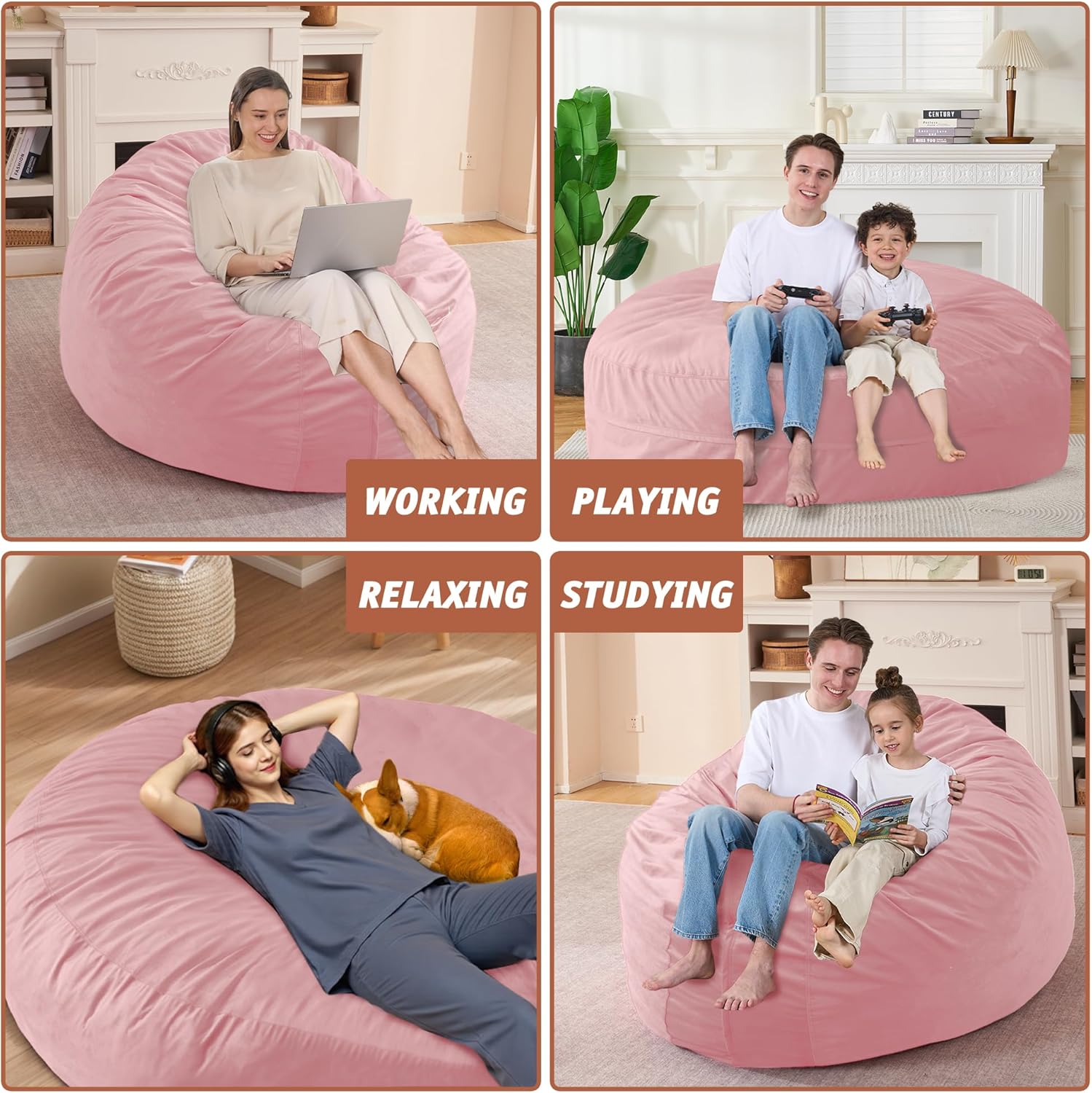 - 🎀【Fit for Whole Family & Multifunctional】3ft beanbag is suitable for youth, 4ft beanbag chair is suitable for women and children, 5ft beanbag is suitable for women and men, 6ft and 7ft bean bags are suitable for a family, different sizes and colors to meet your needs. The saucer chair can be used as a bed, a chair, or a lazy sofa, suitable for reading, playing, watching TV, sleeping... As well as bedrooms, living rooms, university dormitories, etc. In addition, it is a good gift for family and friends!