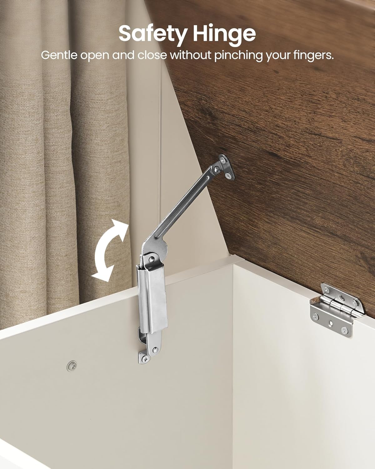 - Sturdy Support and Safety Hinge: Crafted with premium boards and metal fittings, this wooden storage trunk boasts a 220 lb on its top for durability. The safety hinge and U-shaped cutout prevent finger pinching, adding extra protection for your daily use