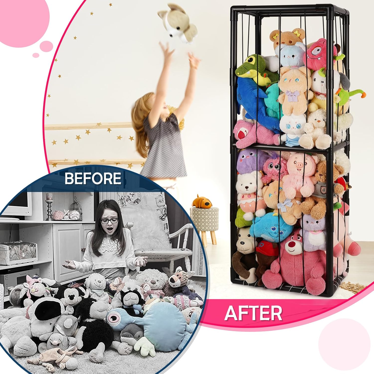 - 【Sturdy Construction】It is made with a sturdy, PVC and has a white base. The stuffed animal storage is designed with style and functionality in mind, perfect for playhouses, nursery room, kindergartens, corners, room organization.