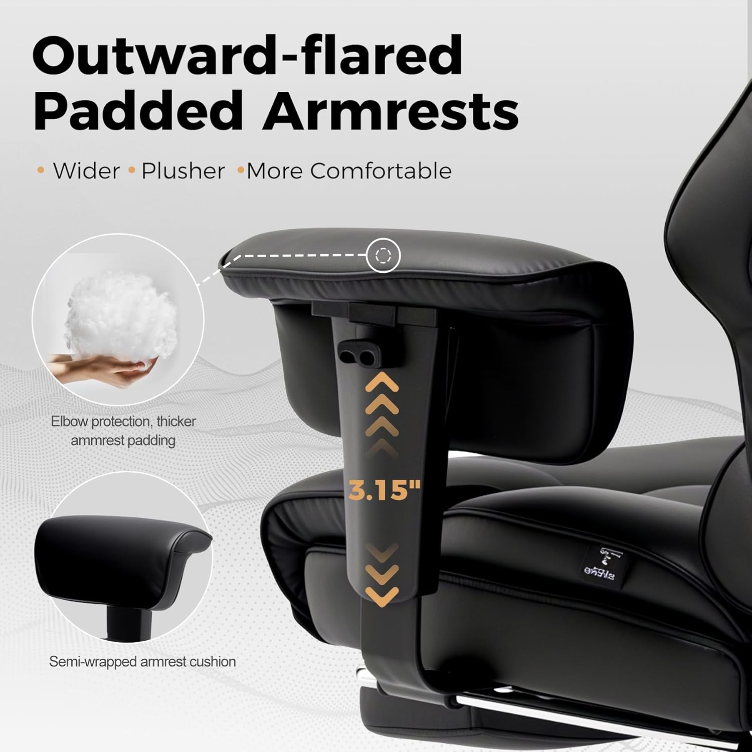 GTRACING Big and Tall Gaming Chair 400lbs Heavy Duty Office Chair with Foot Rest & Ergonomic Pocket Spring Cushion, High Back Lumbar Support for Lower Back Pain Relief, Ergo Black
