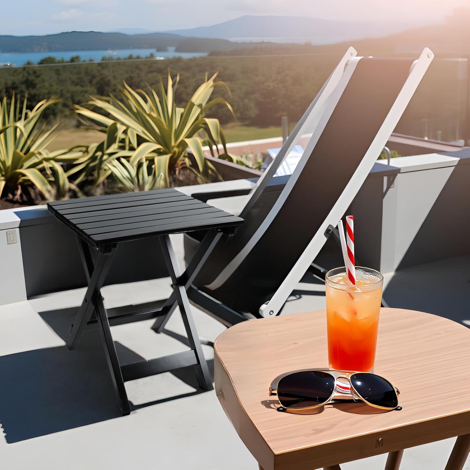 - 【Convenient Instant Setup】: This outdoor side table arrives fully assembled for immediate use—simply unfold and place it in your desired spot. With zero assembly needed, it offers effortless convenience while instantly elevating your patio, deck, or garden with functional style.