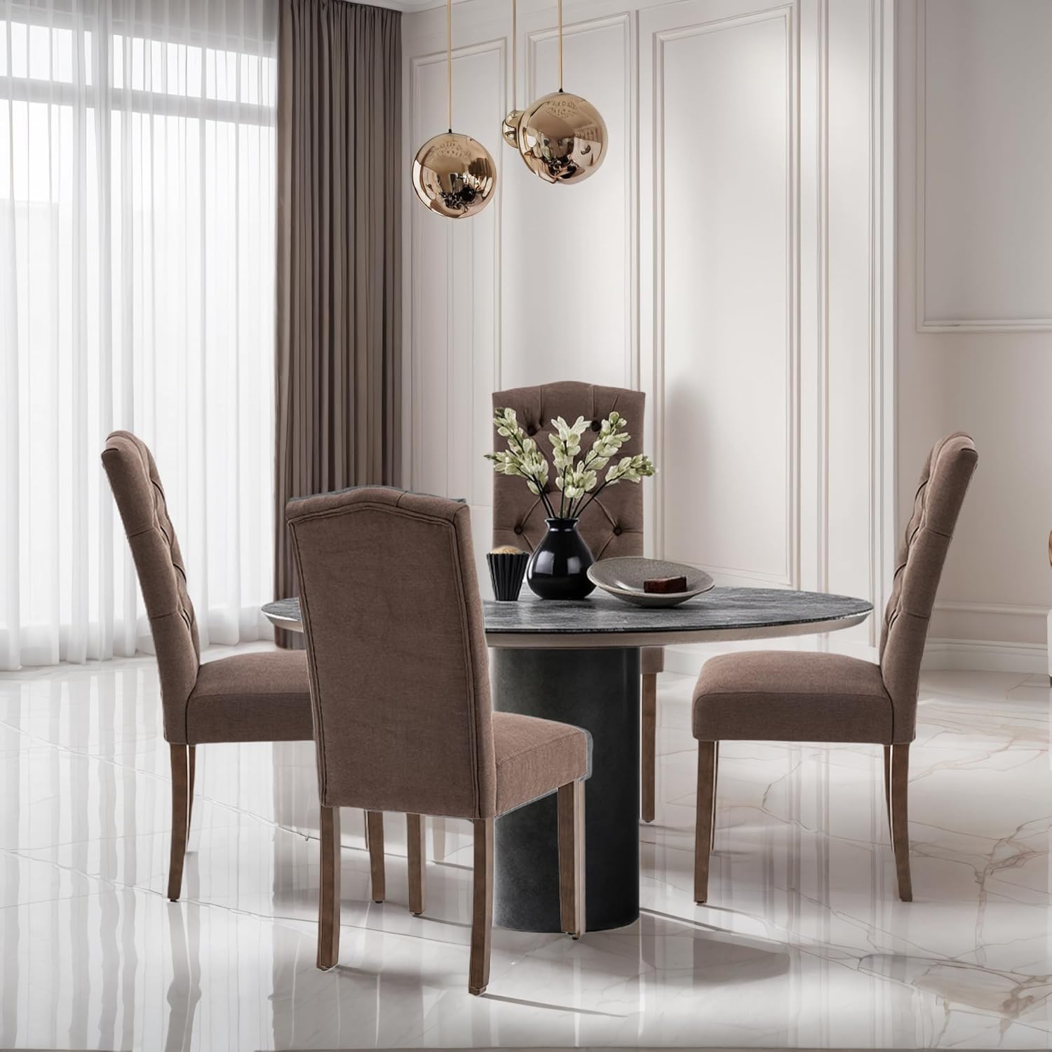 - Elegant & Modern Style: These dining chairs feature diamond tufting with deep inset buttons, adding an element of elegance. The sleek and clean lines make them seamlessly blend with any home decor, creating a warm and inviting atmosphere in the dining room.