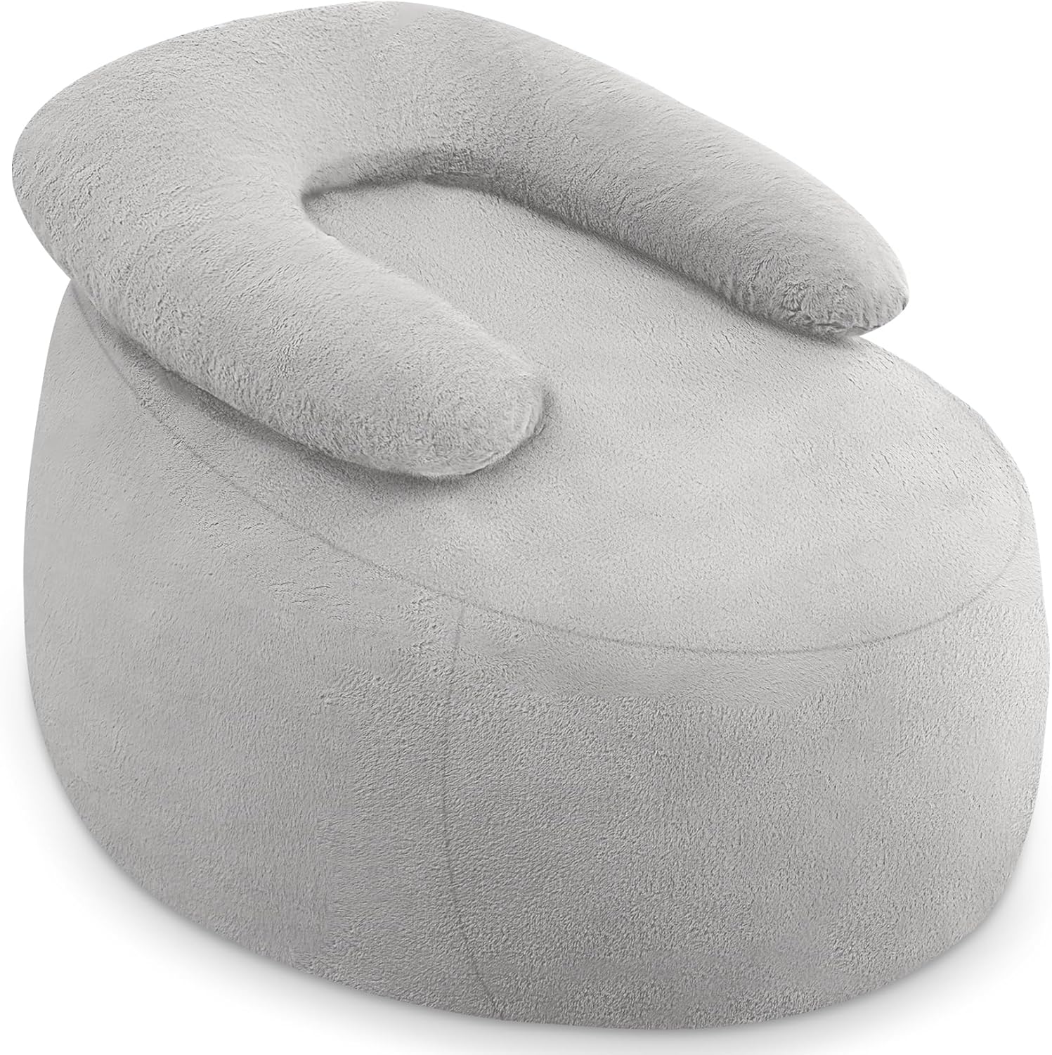 HABUTWAY Bean Bag Chair with U-shaped Pillow for Adult and Kids Big BeanBag Chair with Filling Ultra Soft Faux Fur Couch Chair with Washable Cover for Living Room Bedroom Office,Light Grey& Light Grey