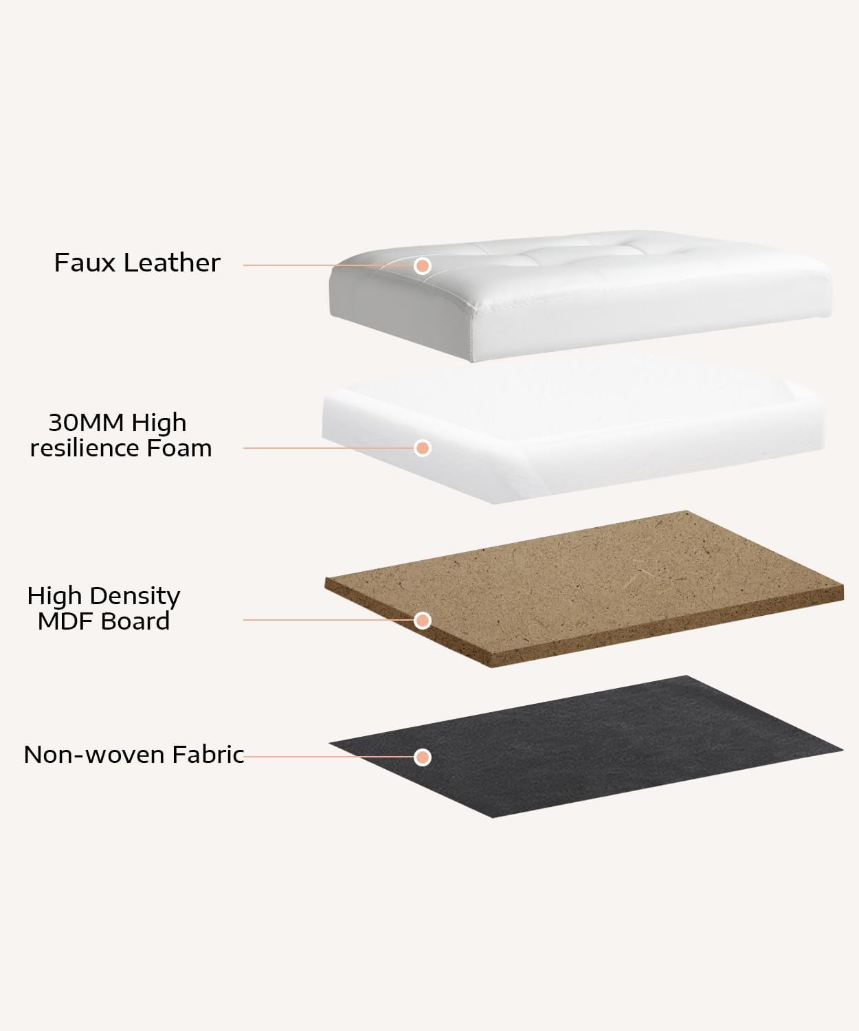 - Exquisite and sturdy: The storage ottoman is constructed of heavy duty E1 rated MDF for durability. The top cover and exterior are upholstered with high resilience thick foam and premium upgraded lychee grain leather, making the footstool both beautiful and practical, as well as soft and comfortable