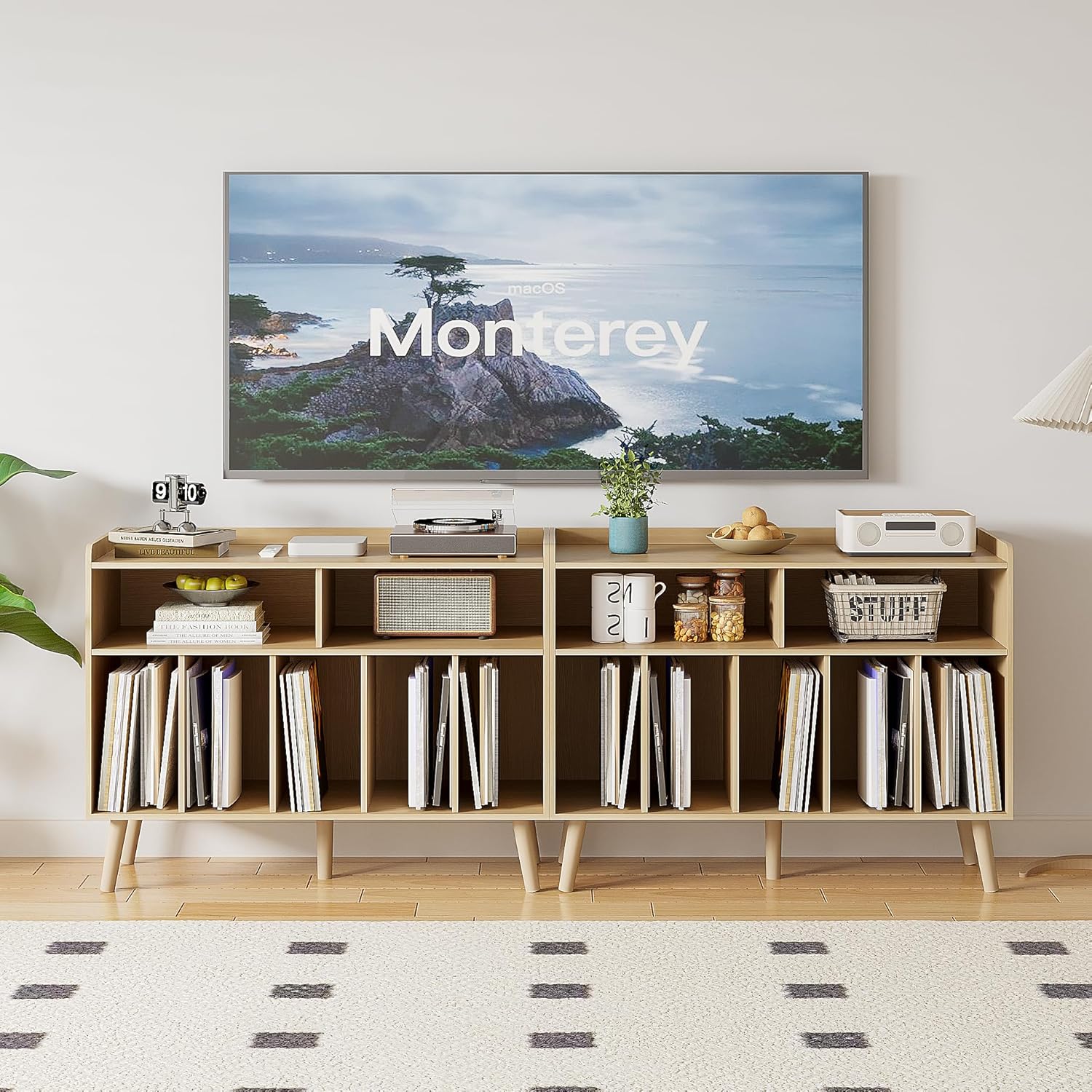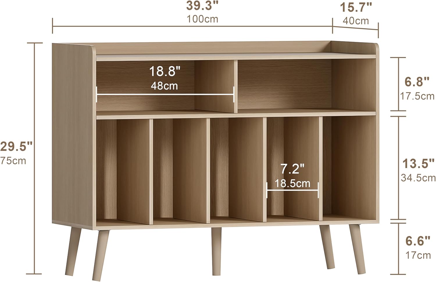 - 【Ample Storage Space】The two open shelves on the upper part and the five storage compartments on the lower part can store vinyl records, books, and other items according to their different types and styles, making it easy to organize
