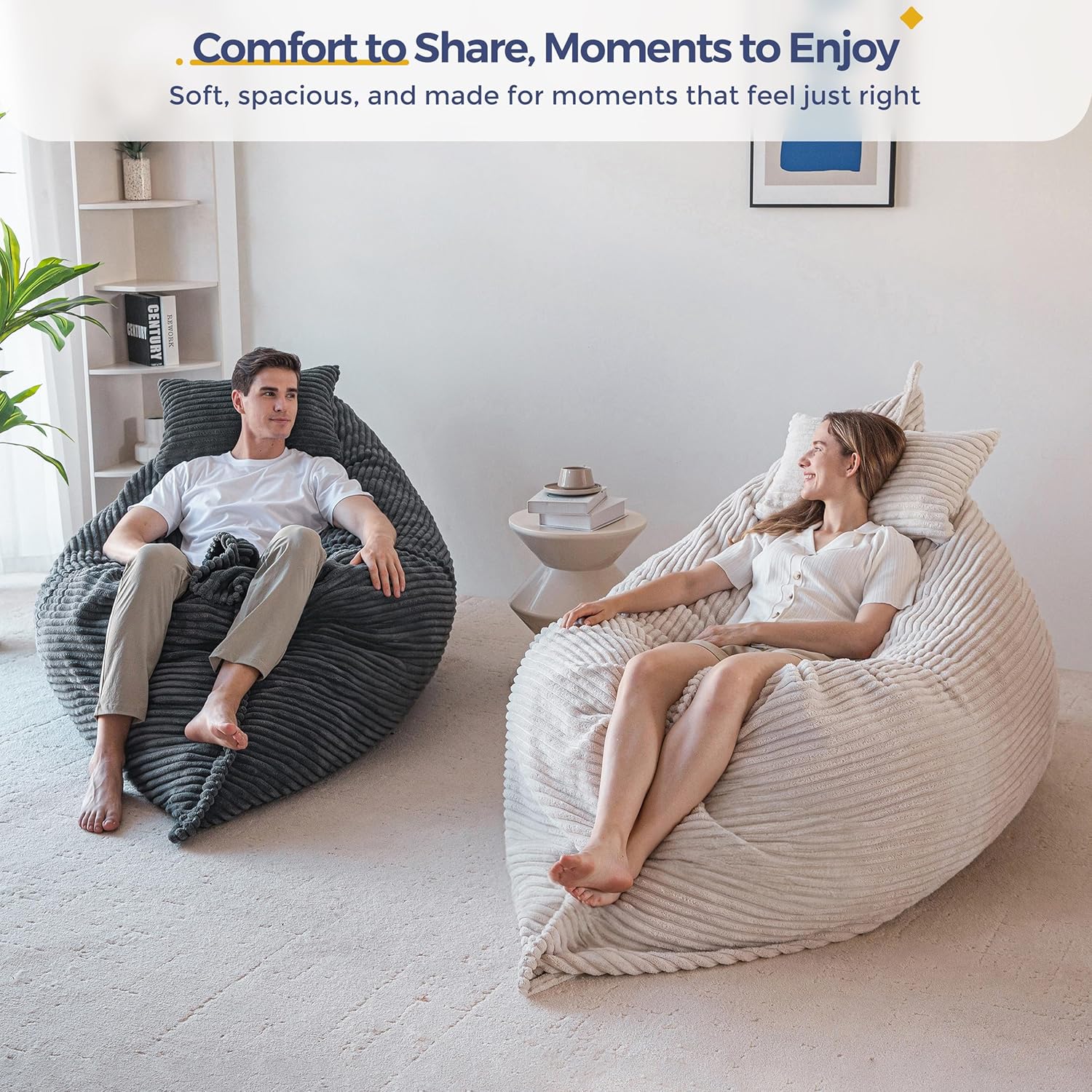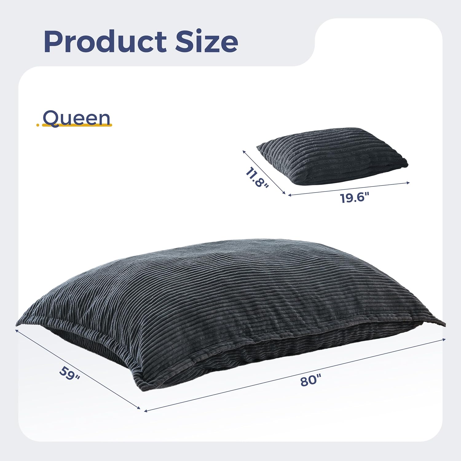 MAXYOYO Giant Bean Bag Chair with Pillow, 3 in 1 Convertible Bean Bag Chair for Adults with Washable Cover, Removable Floor Cushion Stuffed Floor Lounger for Living Room Bedroom, Dark Grey, Queen