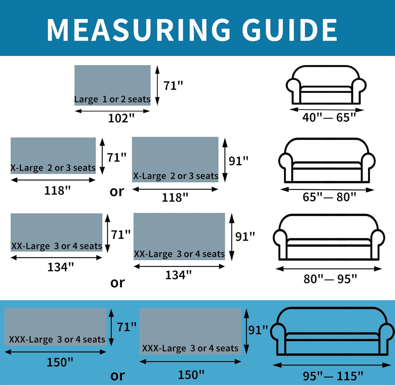 - SIZE CHOICE: Please measure your furniture size before choosing couch covers for sofa, size 71 "x 102" is suitable for single or small loveseat, size 71 "x 118" is suitable for loveseat or small 3 seat sofa, couch blanket cover size 71 "x 134" is suitable for 3 seat or small 4 seat sofa, size 91 "x 134" is suitable for couch covers for oversized sofa, couch covers L Shape allows you to choose 2 pieces of sofa cover,please refer to the measurement in the picture 5 for details Guide.