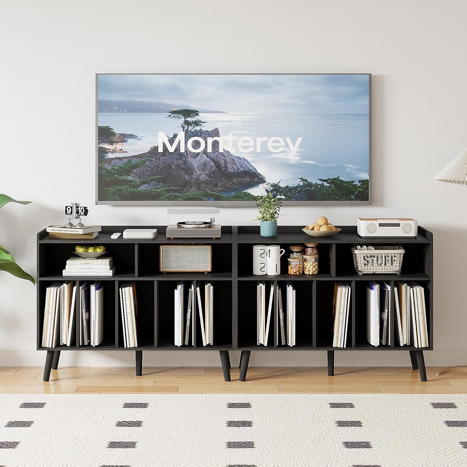 - 【Ample Storage Space】The two open shelves on the upper part and the five storage compartments on the lower part can store vinyl records, books, and other items according to their different types and styles, making it easy to organize