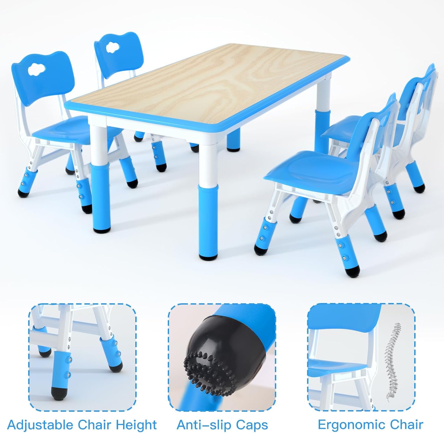 Kids Table and 4 Chairs Set,Height Adjustable Children Table & Chair,Toddlers Study Multi-Activity Table with 47.2"x23.6" Wipe-Clean Desktop,for Classrooms, Homes & Daycares