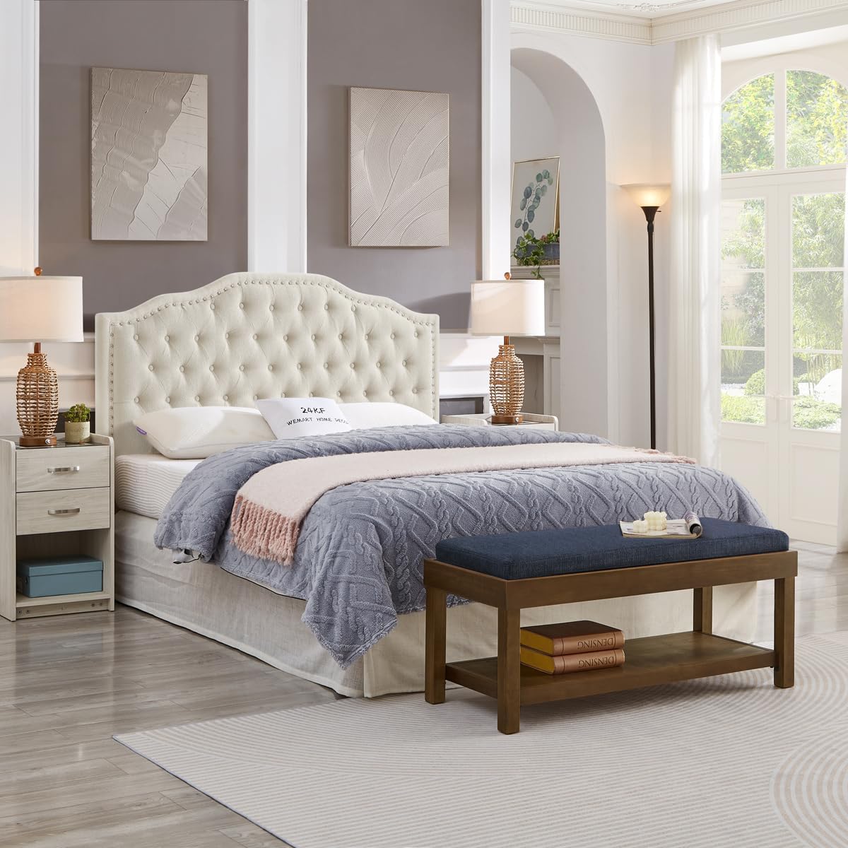 24KF Large Rectangular Storage Bench,Upholstered Seat Cushion,Ottoman Coffee Table with Navy Blue Removable Cushion for Living Room,Entryway Bench Bed Bench with Solid Wood Shelf,5069-Navy Blue
