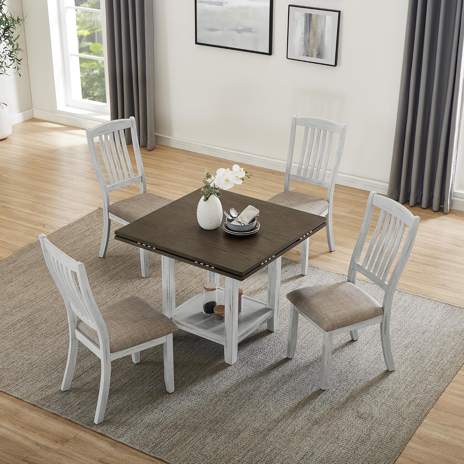 Ball & Cast 5 Pieces Dining Table Set with 4 Chairs and 51" Round Folding Dining Table,Kitchen Table and Chairs for 4 W/Trestle Table Base,for Small Space,Apartment,Dining Room,Brown White