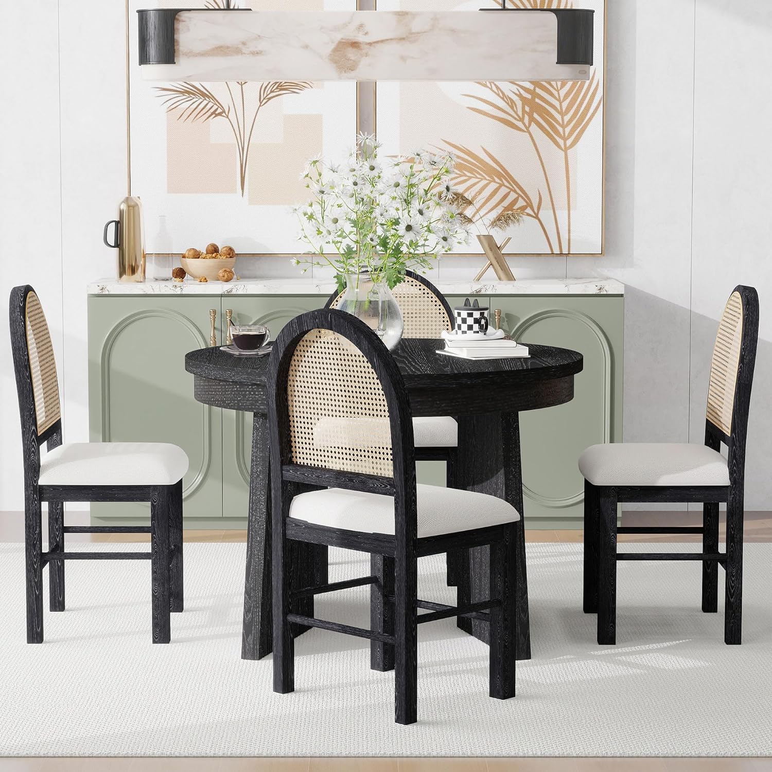 - Vintage-Inspired Design: Ball & Cast 5-piece dining set blends retro charm with modern functionality. The rattan-back chairs and round oak-veneer tabletop create a cozy, nostalgic vibe, perfect for apartments or small dining spaces. Its vintage aesthetic elevates kitchens or intimate gatherings while maintaining a timeless appeal.
