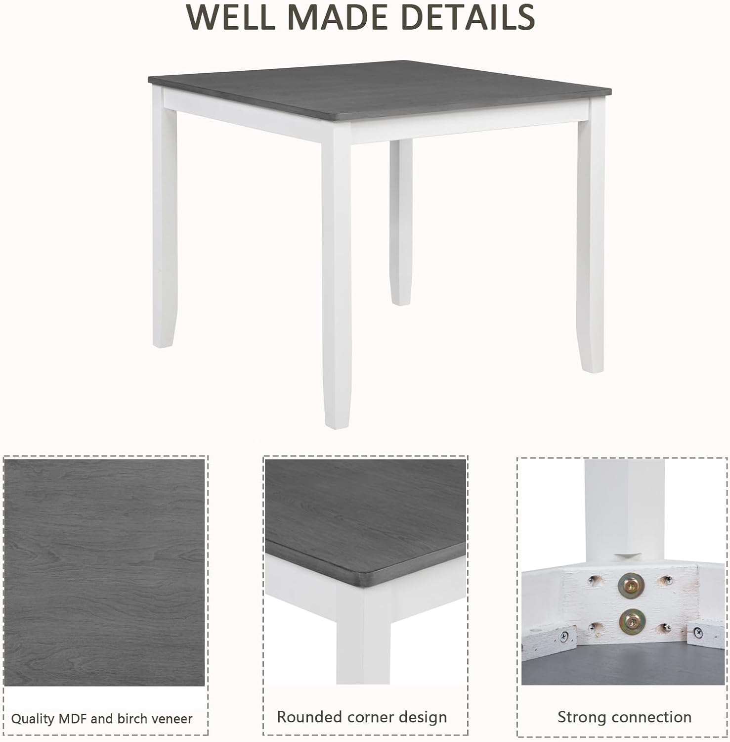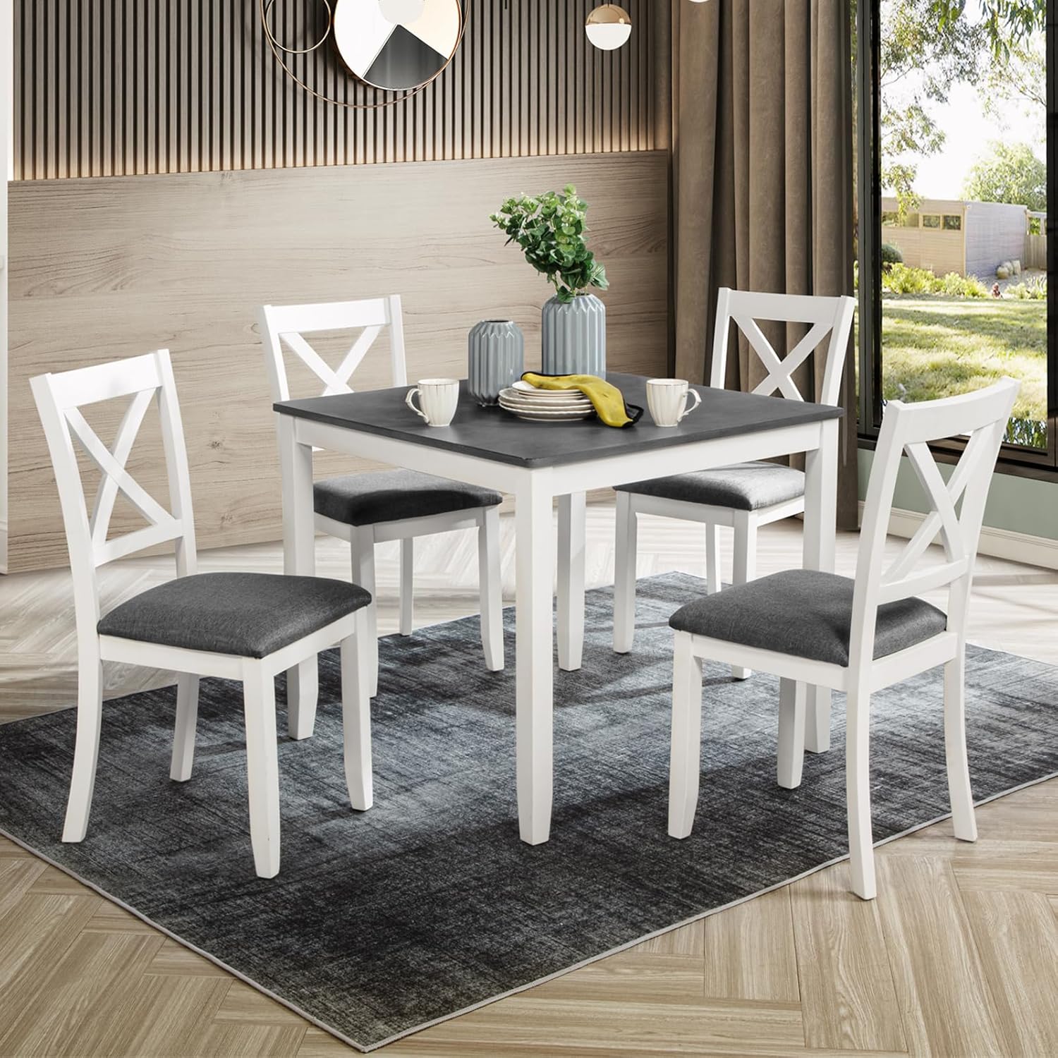 Ball & Cast 5 Piece Dining Table Set with 4 X-Back Chairs,Wooden Living Room Furniture W/ 34.5" Square Kitchen Desk,Easy Assemble & Clean,for Small Space,Apartment,Dining Room,White+Gray