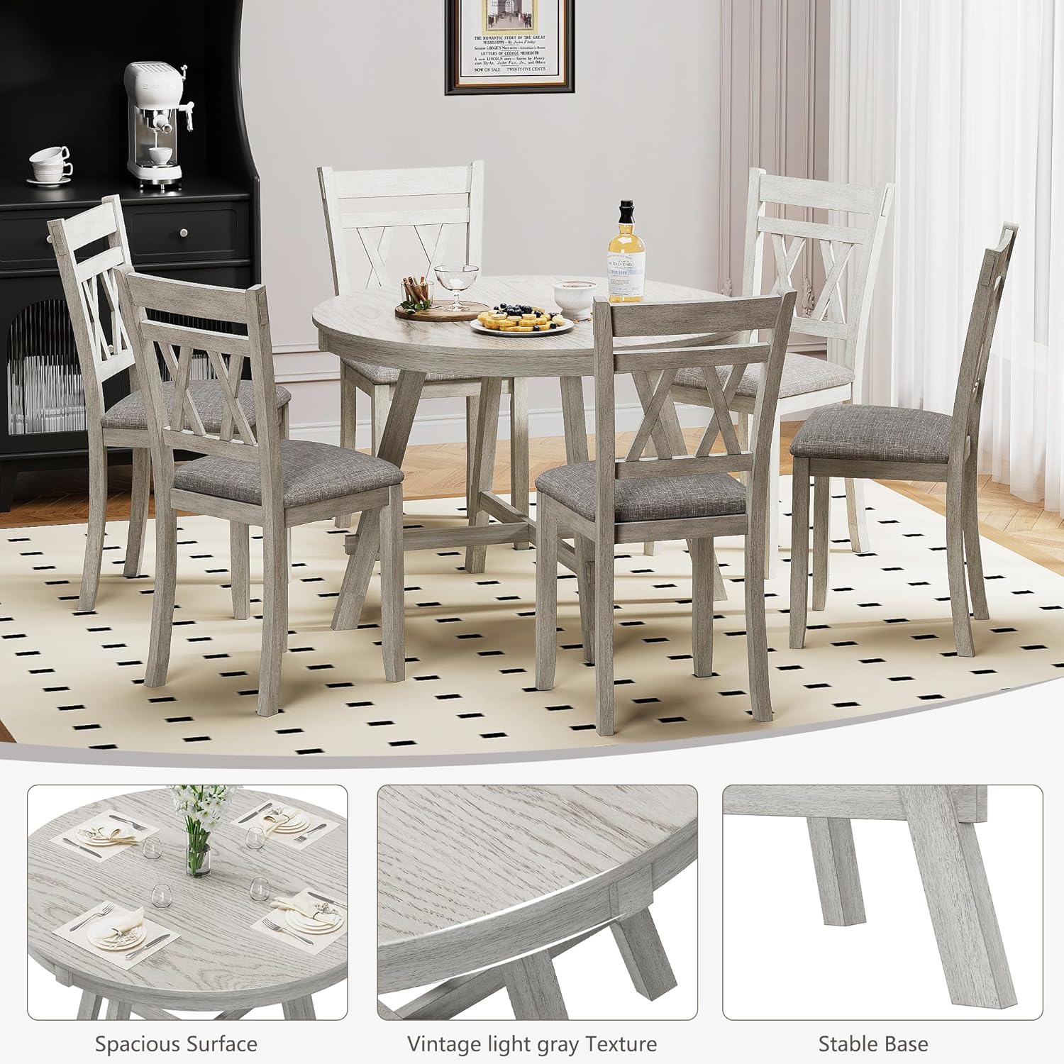 Round Solid Wood Dining Table, Part of Dining Table Set, Mix and Match Table, Chair Sold Separately for Dining Room, Kitchen, Grey