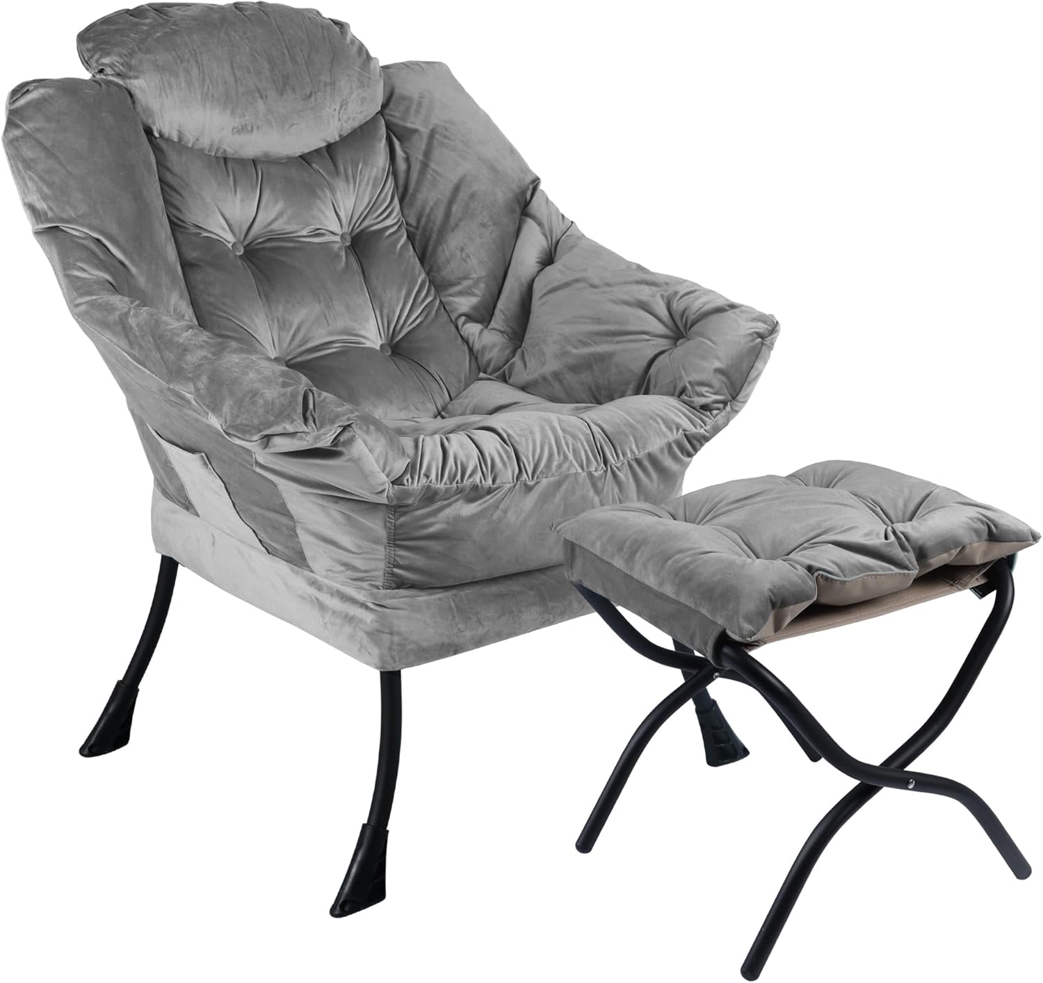 Lazy Chair with Folding Ottoman,Living Room Chairs, Accent Contemporary Lounge Chair, Single Steel Frame Leisure Sofa Chair with Armrests and A Side Pocket (DL22GRAY)