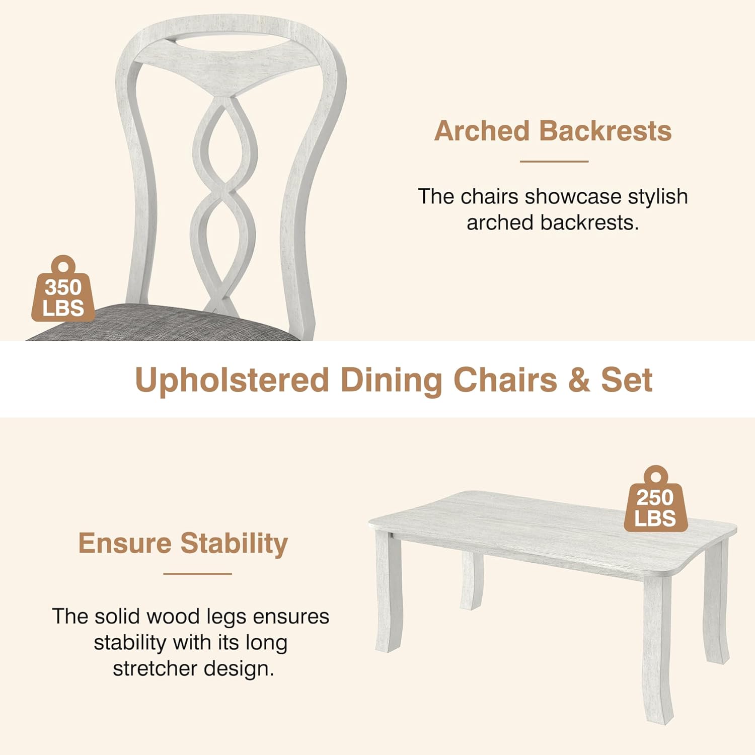 7-Piece Solid Wood Dining Table Set with 6 Upholstered Chairs - Easy Assembly Modern Design for Kitchen & Small Spaces, Durable Wooden Table and Chairs for Dining Room, Kitchen, Light Grey