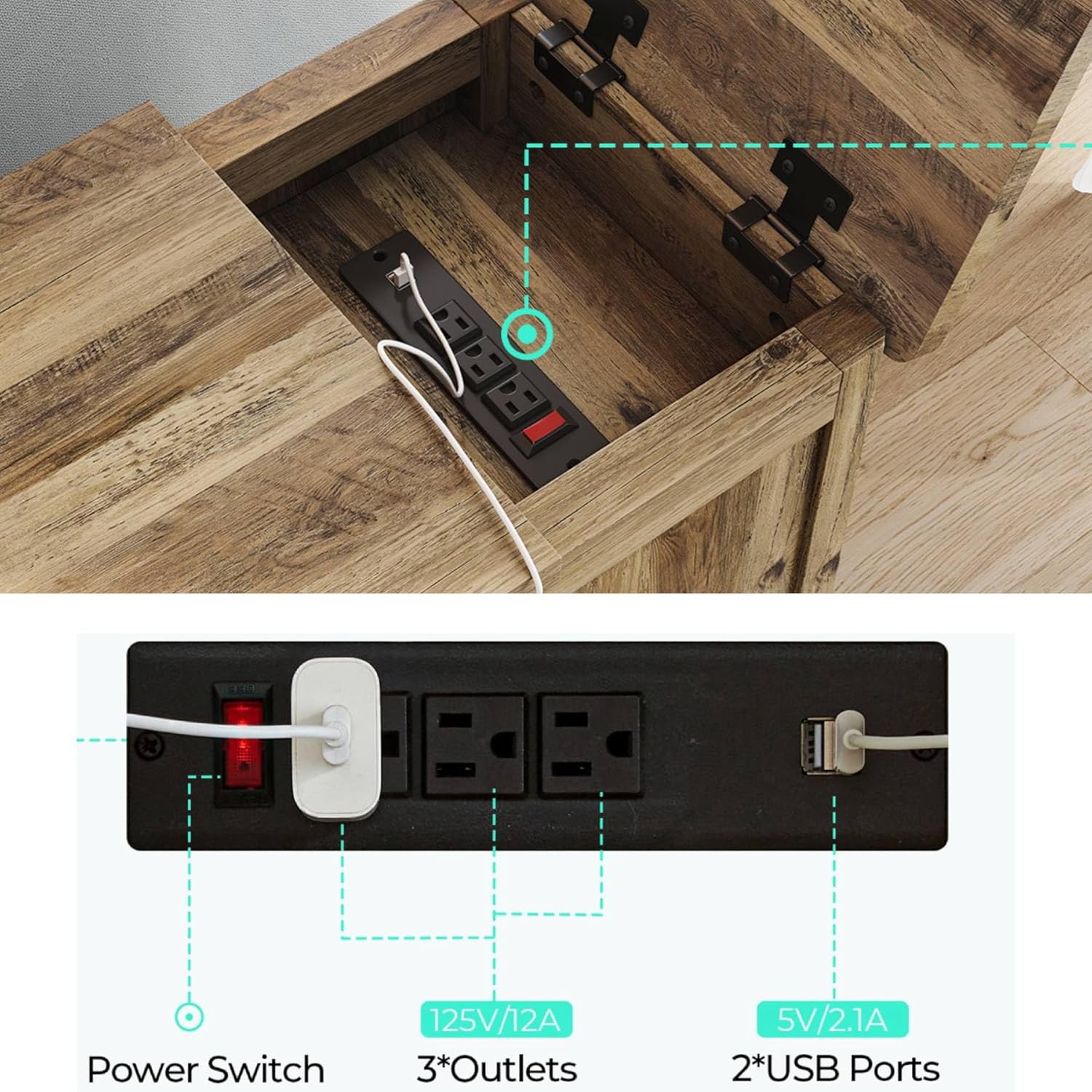 - Upgraded End Table with Charging Station – Built for modern convenience, this end table features 2 USB ports and 3 AC outlets, letting you charge up to 5 devices at once. From your phone and laptop to a desk lamp or tablet, everything stays powered. The 6.5-foot power cord offers flexible placement anywhere in your home