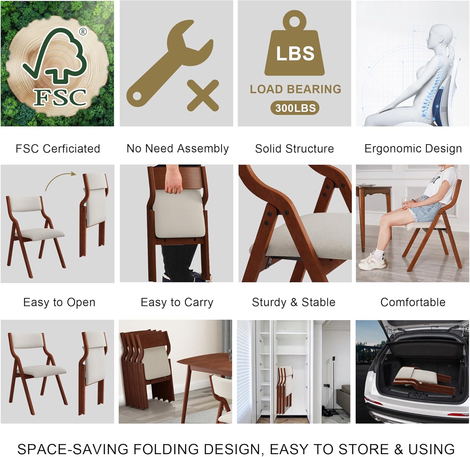 - [Space-Saving Foldable Dining Chairs] Perfect for small spaces! These folding chairs—tuck them under beds, in closets, or car trunks. Yet they support up to 250 lbs.