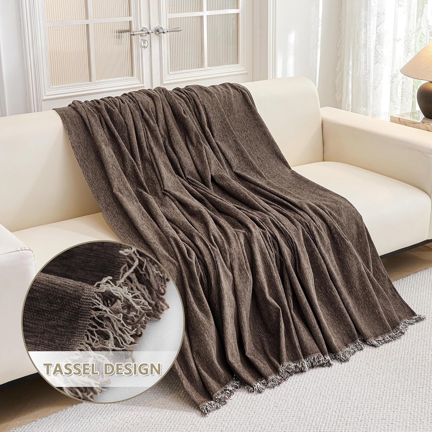 MYSKY HOME Loveseat Cover Deep Chocolate Couch Cover Sectional Couch Covers for 2 Cushion Couch Sofa Thick Universal Chenille Sofa Cover with Tassel Durable Furniture Protector for Dogs 91" x 118"