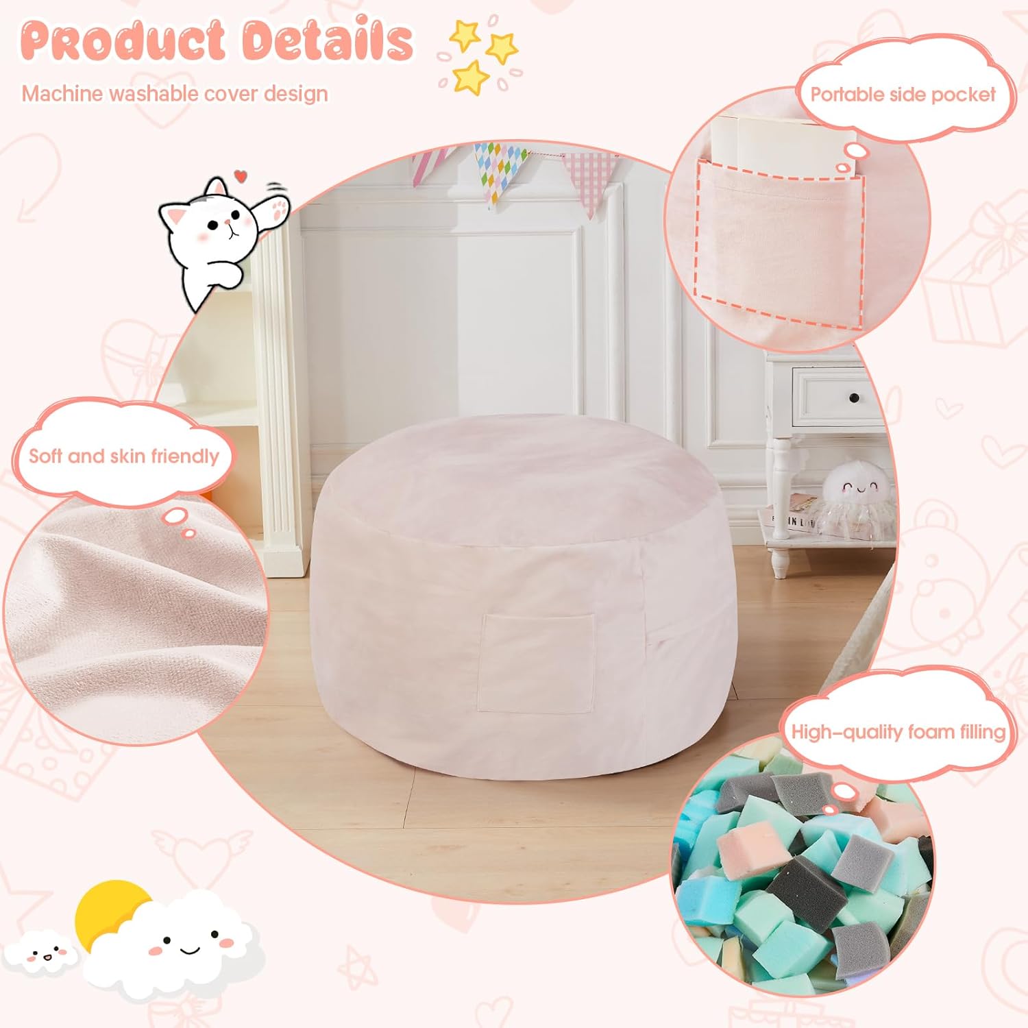 - 【PERFECT FOR ALL FUN】This versatile bean bag chair for kids fits perfectly in a reading nook for kids or any kids room, offering a comfy place to relax after school or during story time. Lightweight and cozy, it also works well as a classroom floor seat, making it a favorite for both home and school use, and a thoughtful gift idea for little ones.