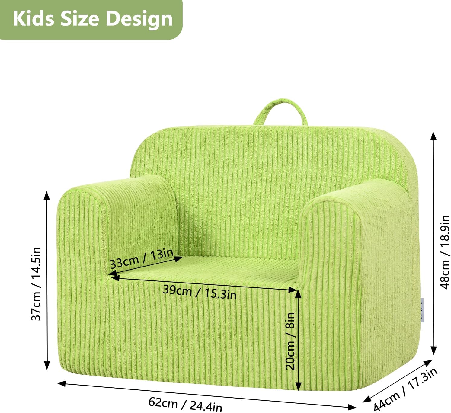 - 【KIDS SIZE CHAIR】: Kids armchair size: L 24.4”*W17.3”*H18.9”. Seat Size: 15.3"L x 13"W. Seat height:8”. Recommend for baby ages 12 months +.