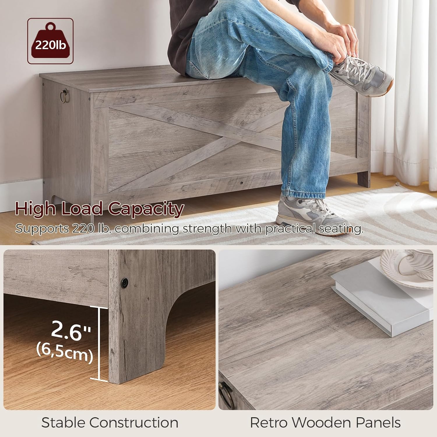 47.2" Toy Chest, Sturdy Entryway Storage Chest with Safety Hinges, Retro Toy Box, Wooden Look Accent Furniture for Living Room, Bedroom, Greige SCGY48801N1