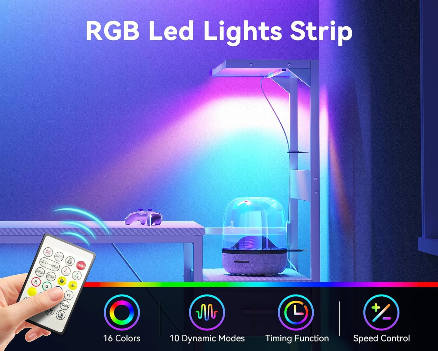 - LED LIGHTING SYSTEM: Built-in RGB LED strip offers 16 colors and 10 dynamic modes with remote-controlled timing function and speed adjustment for customizable gaming atmosphere to enhance your gaming experience.