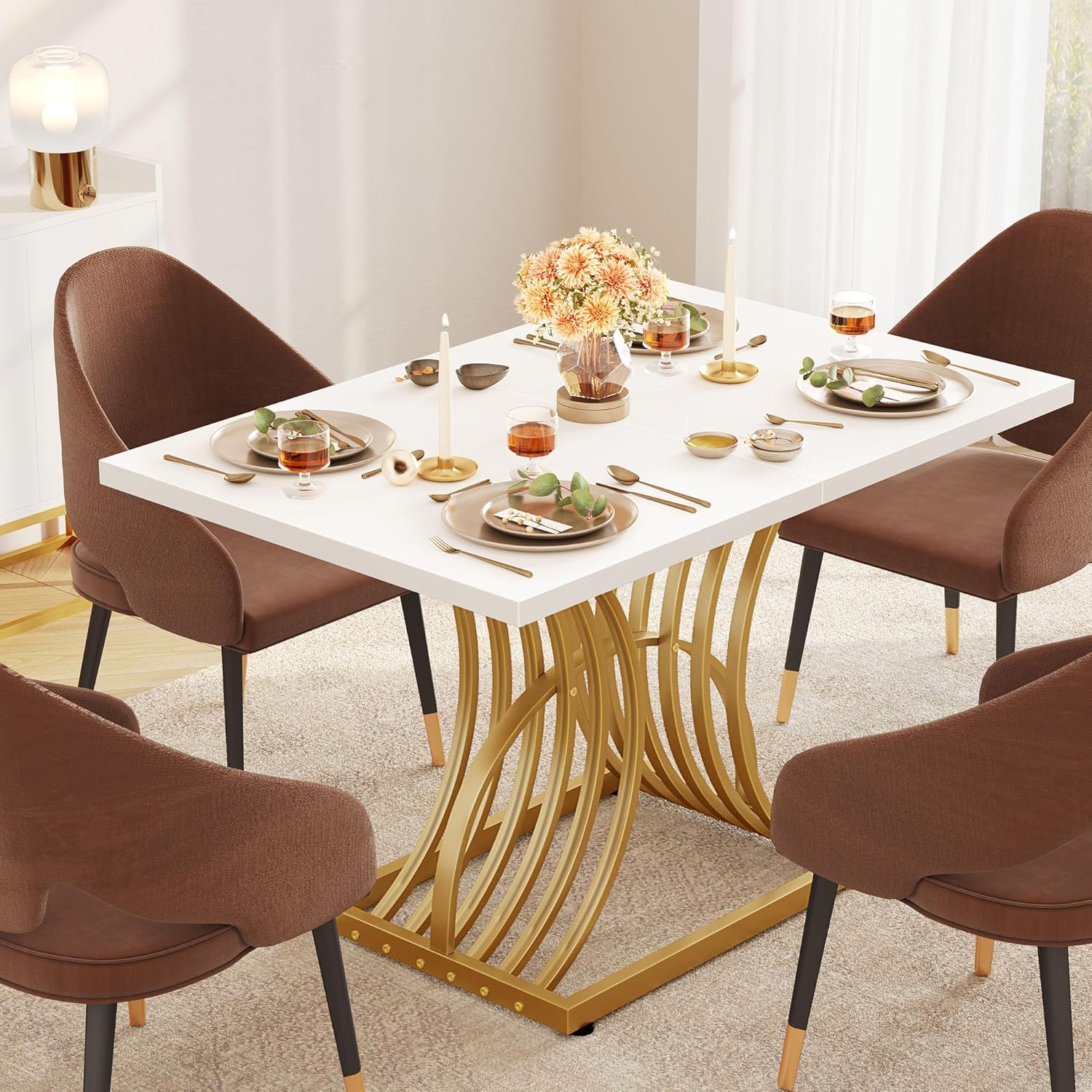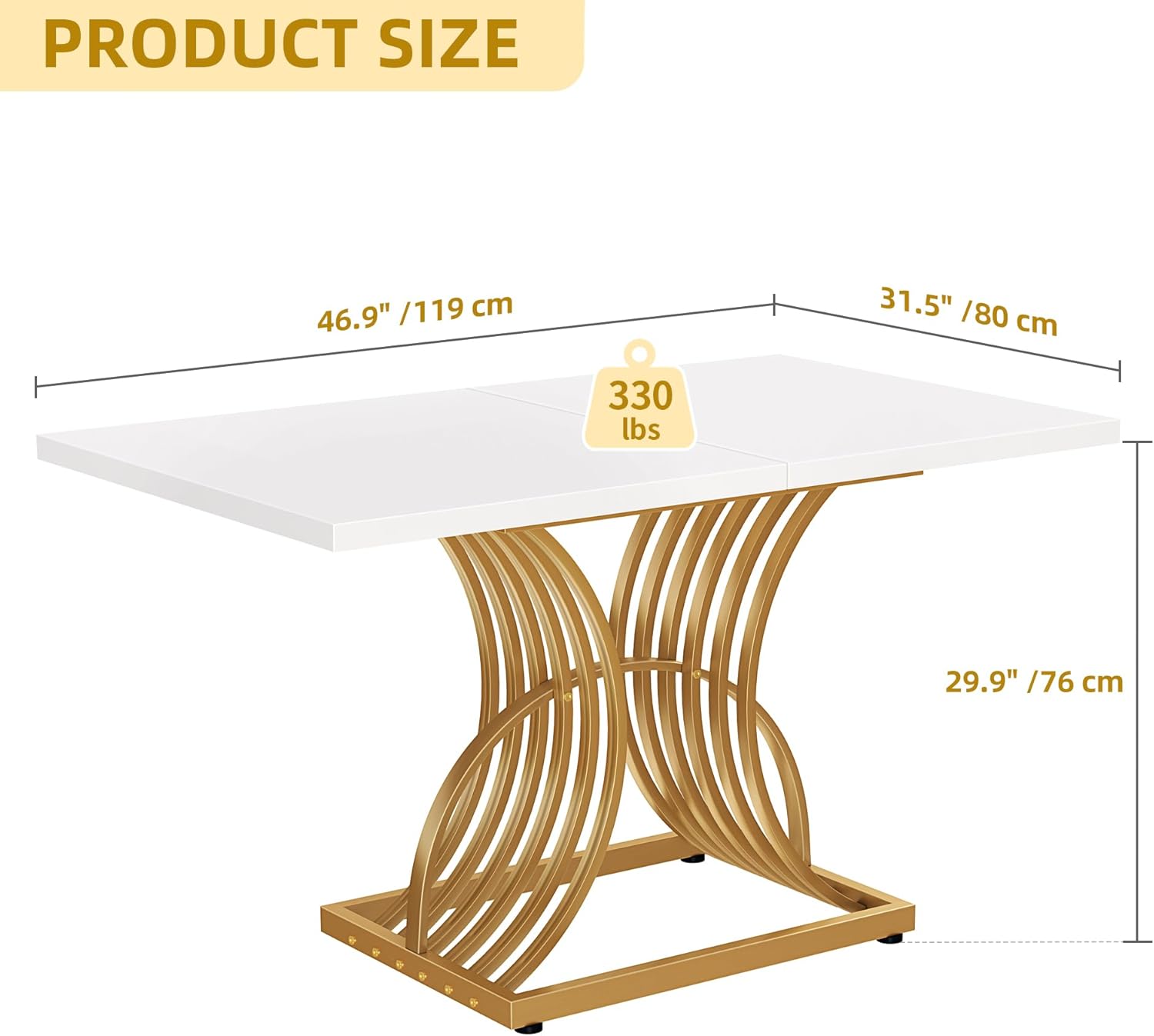DWVO Modern Dining Table for 4 People 47 Inch Rectangular Kitchen Table with White Tabletop and Gold Geometric Legs Small Dinner Table Kitchen & Dining Room Furniture White & Gold