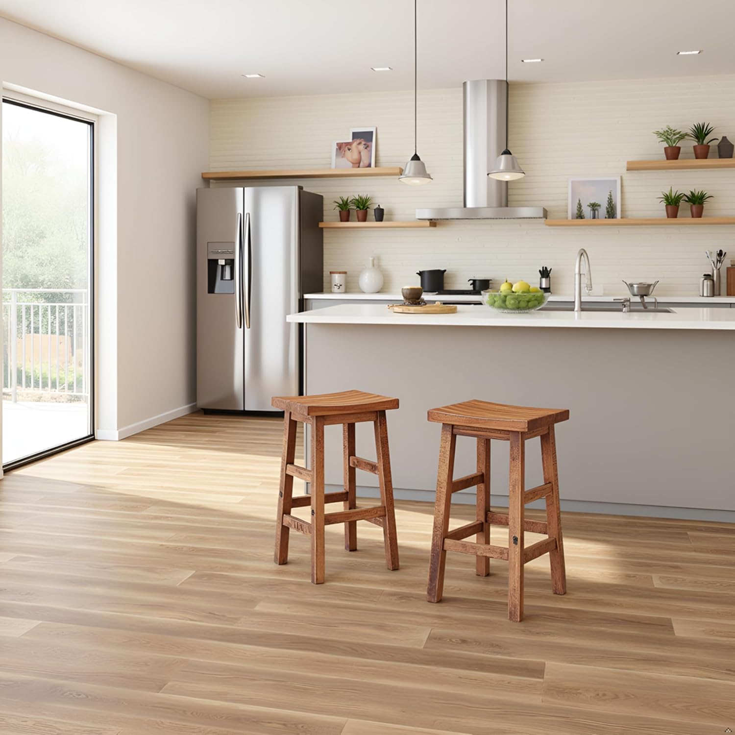 Alaterre Furniture Durango 26-Inch Industrial Wood Counter-Height Stools – Set of 2 Rustic Saddle Seat Bar Stools - Vintage Style with Light or Dark Lacquer Finish for Kitchen Island or Home Bar