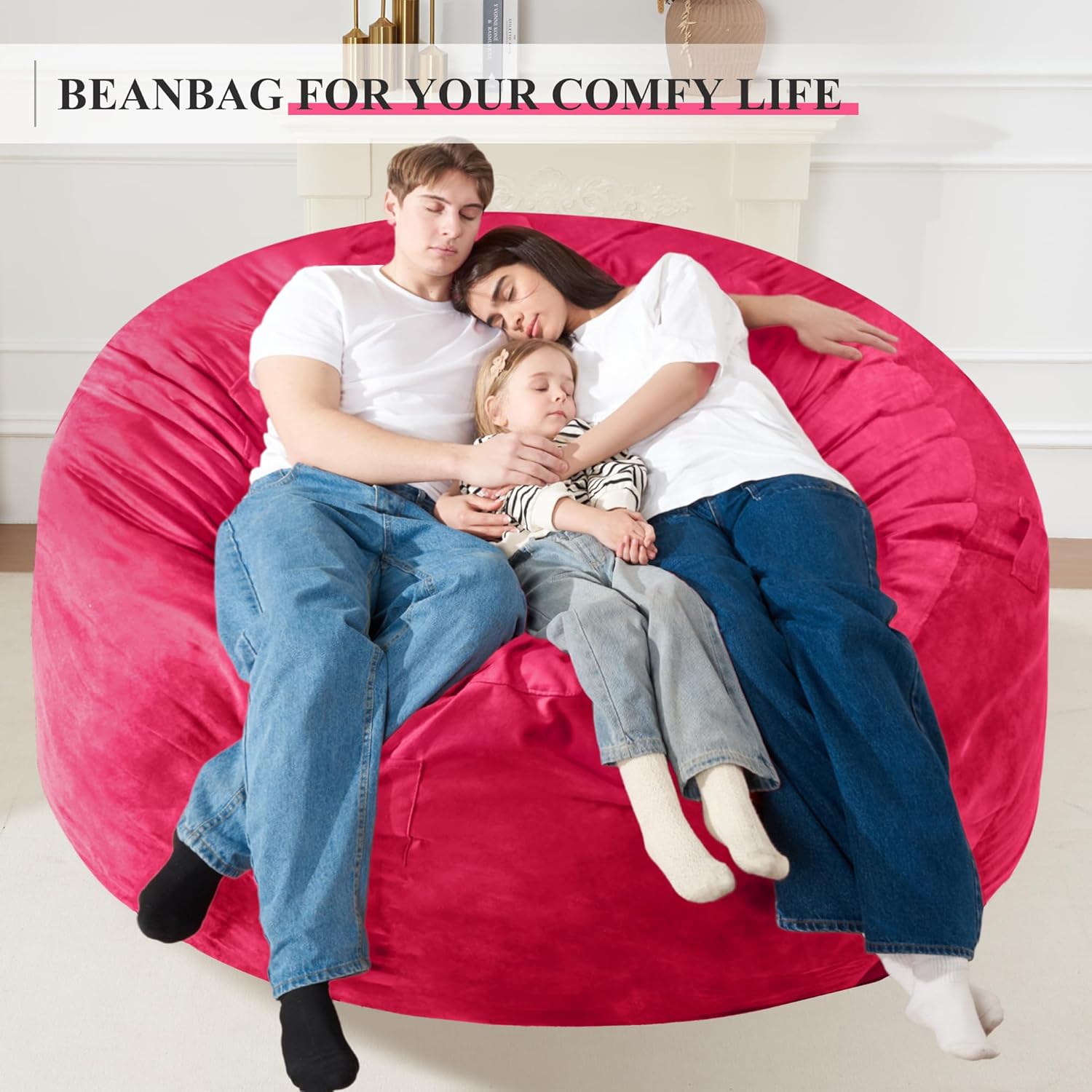 Homguava 6 FT Bean Bag Chair: 6' Bean Bags with Memory Foam Filled, Large Beanbag Chairs Soft Sofa with Dutch Velvet Cover-Pink