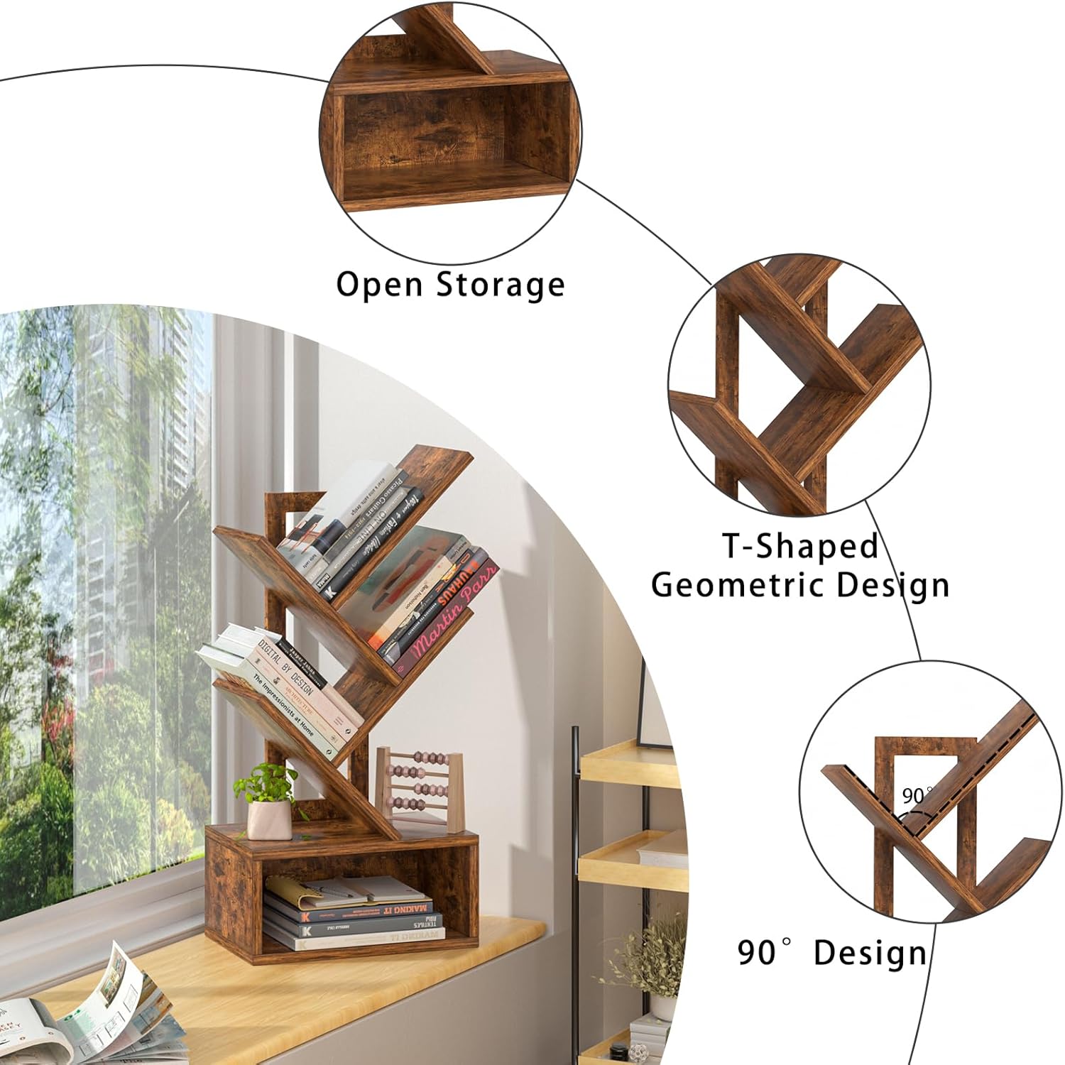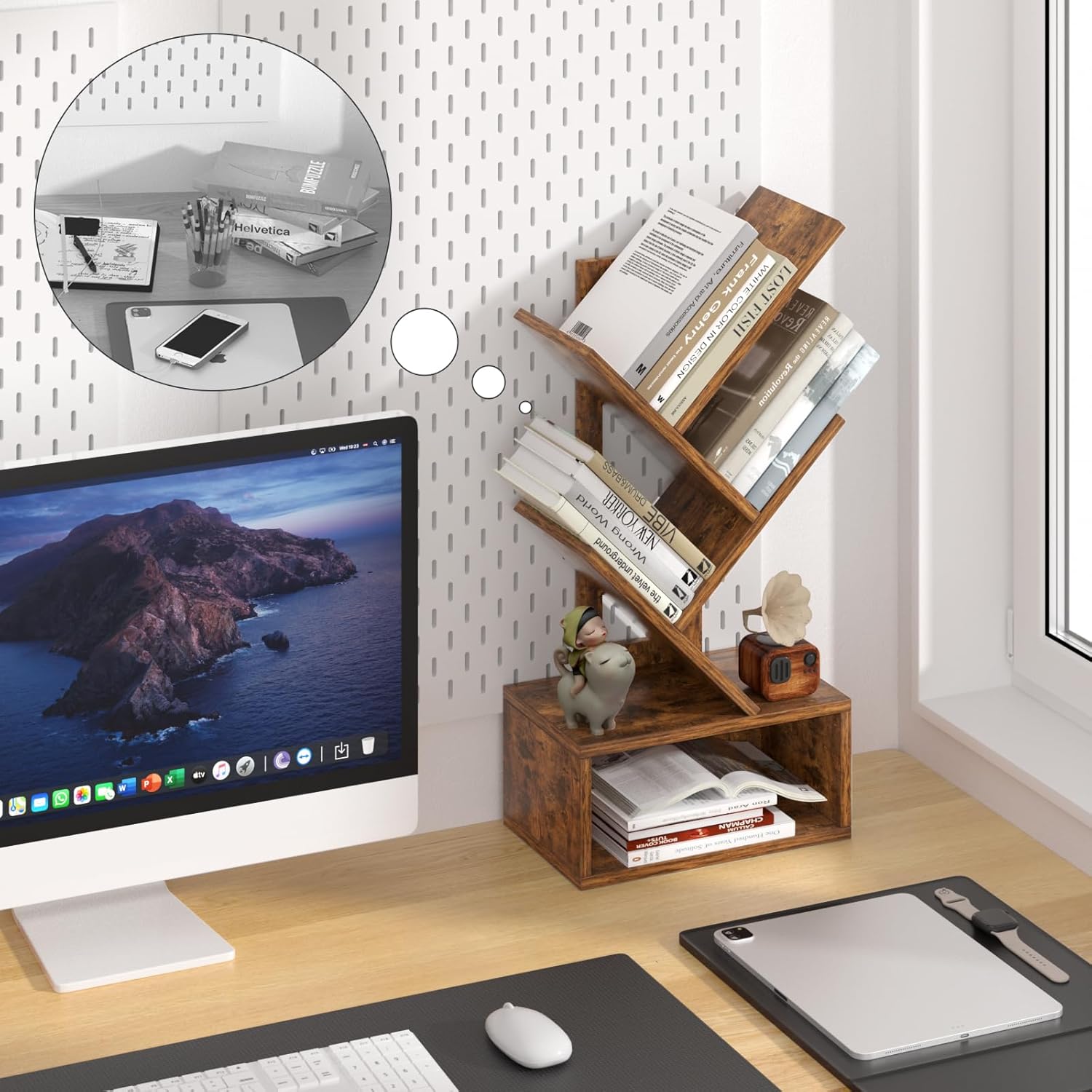 - š² [Small Tree Bookshelf] The inspiration for this 5-tier small tree bookshelf comes from trees in nature. The tree-shaped design provides ample categorized storage space for your books and office supplies, helping to keep your desktop clutter-free. This charming bookshelf is a perfect companion for you and your family while working and studying.