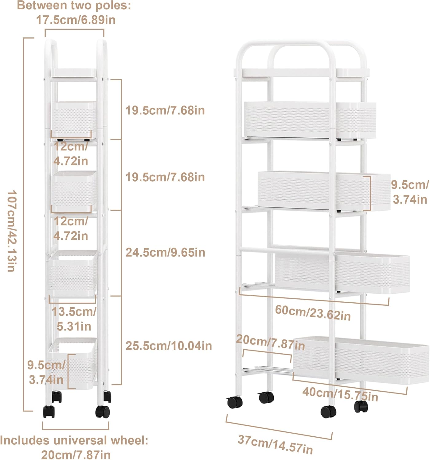 - Sleek and Stylish Design: Featuring a modern, minimalist design and sturdy steel construction, this cart is not only functional but also stylish. It seamlessly complements any room, providing a practical yet attractive storage solution for your home or office.