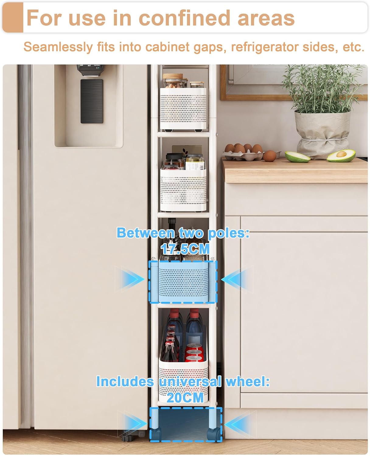 - Perfect Fit for Tight Spaces: The UMDONX slim rolling cart features a 6.9-inch width, making it ideal for narrow spaces in your kitchen, bathroom, laundry room, or anywhere with limited room. Maximize your storage options without sacrificing space.