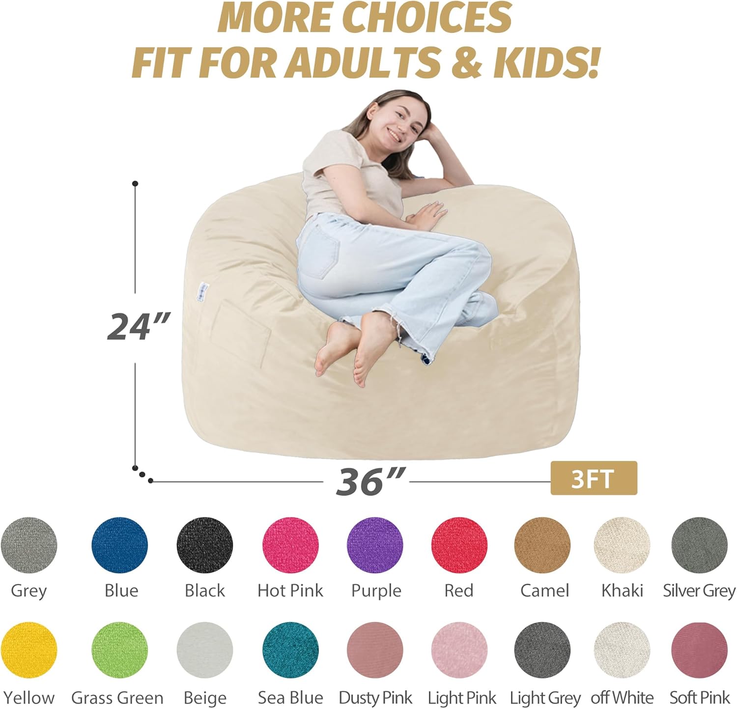 - 🎀【Fit for Whole Family & Multifunctional】3ft beanbag is suitable for youth, 4ft beanbag chair is suitable for women and children, 5ft bean bag is suitable for a family, different sizes and colors to meet your needs. The saucer chair can be used as a bed, a chair, or a lazy sofa, suitable for reading, playing, watching TV, sleeping... As well as bedrooms, living rooms, university dormitories, etc. In addition, it is a good gift for family and friends!