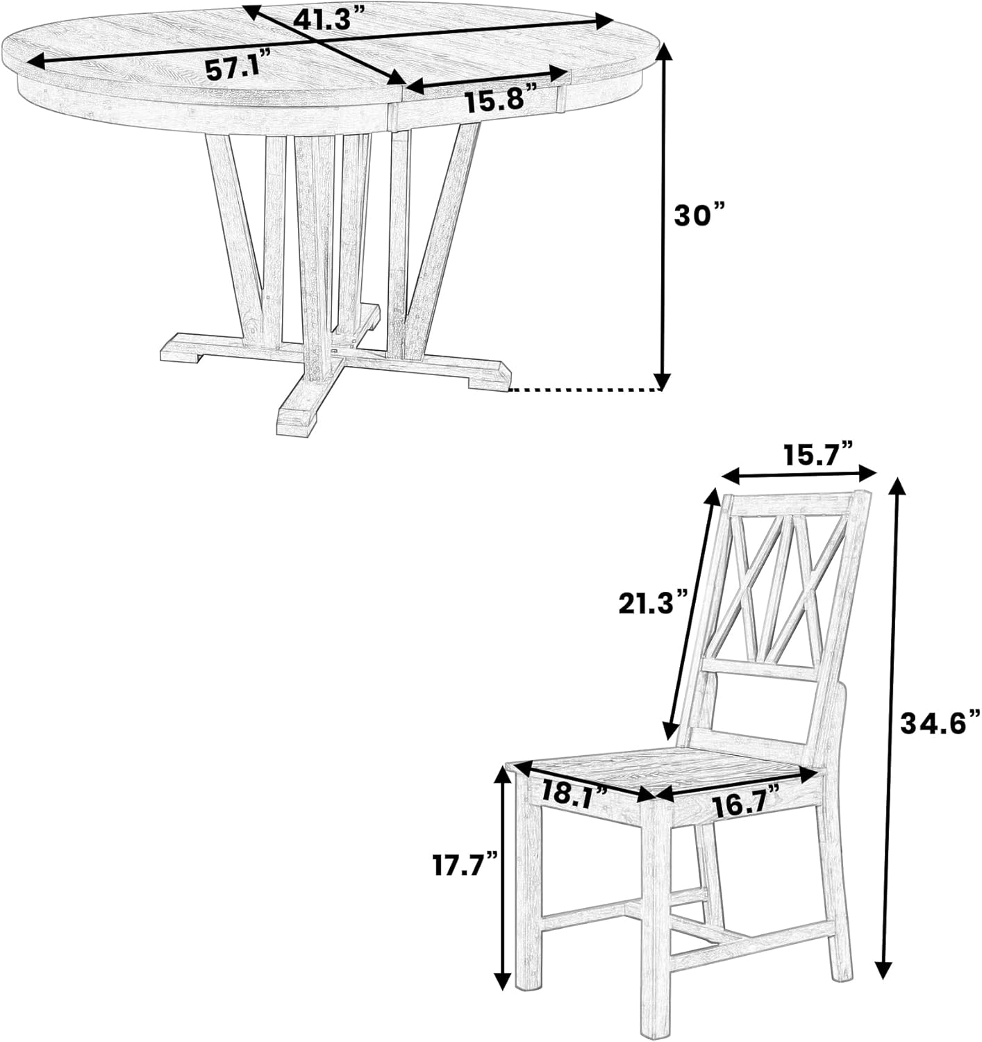 - 【Extendable Round Table】 Designed for versatility, this round table comes with a 15.8" removable leaf, perfect for various occasions. Easily adjust the table length from 41.3" to 57.1", accommodating 4-6 guests comfortably. Maximize your living space and adapt to different scenarios effortlessly. Whether for intimate gatherings or larger gatherings, this table offers flexibility and convenience, ensuring every meal is enjoyed to the fullest.