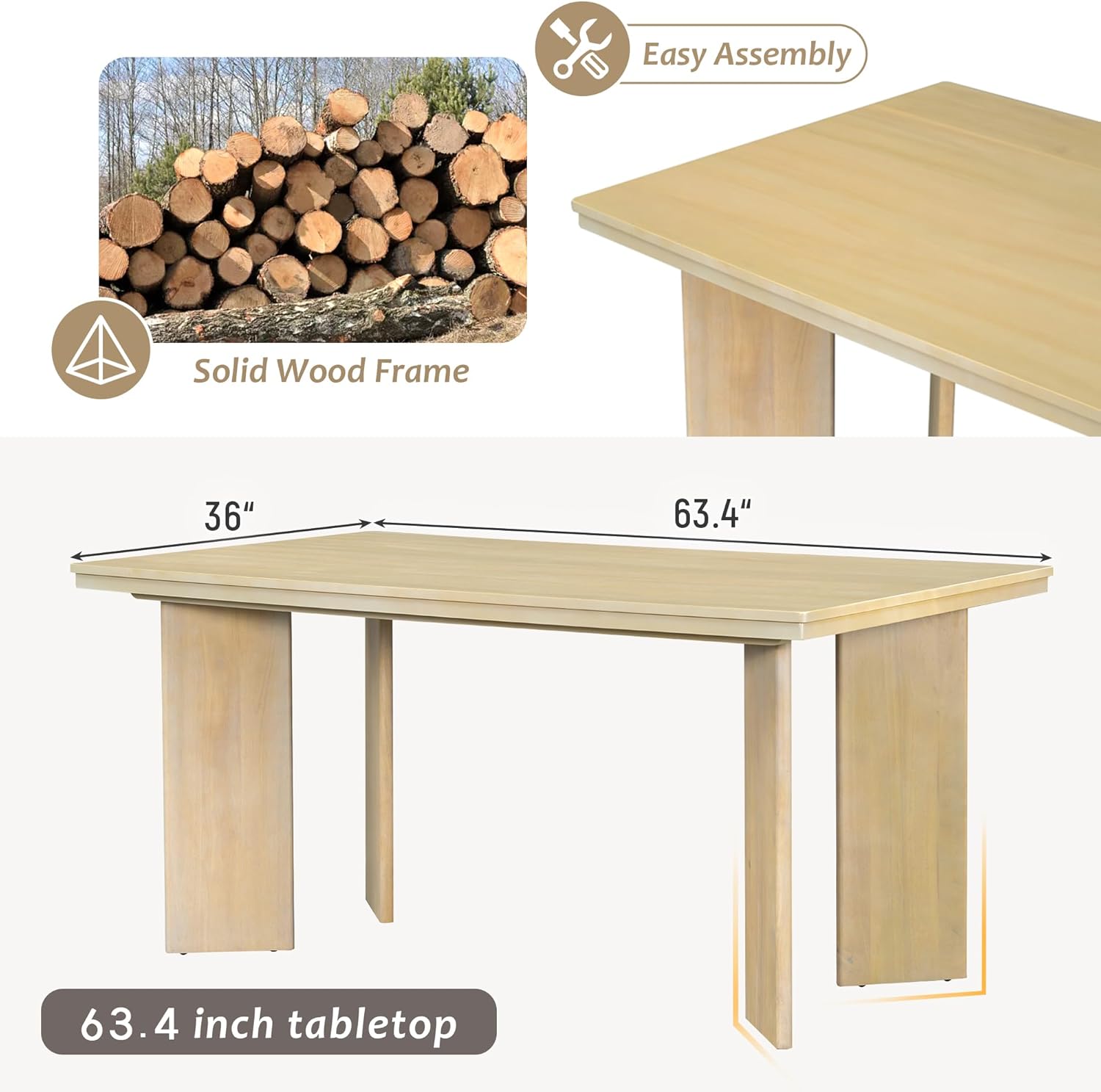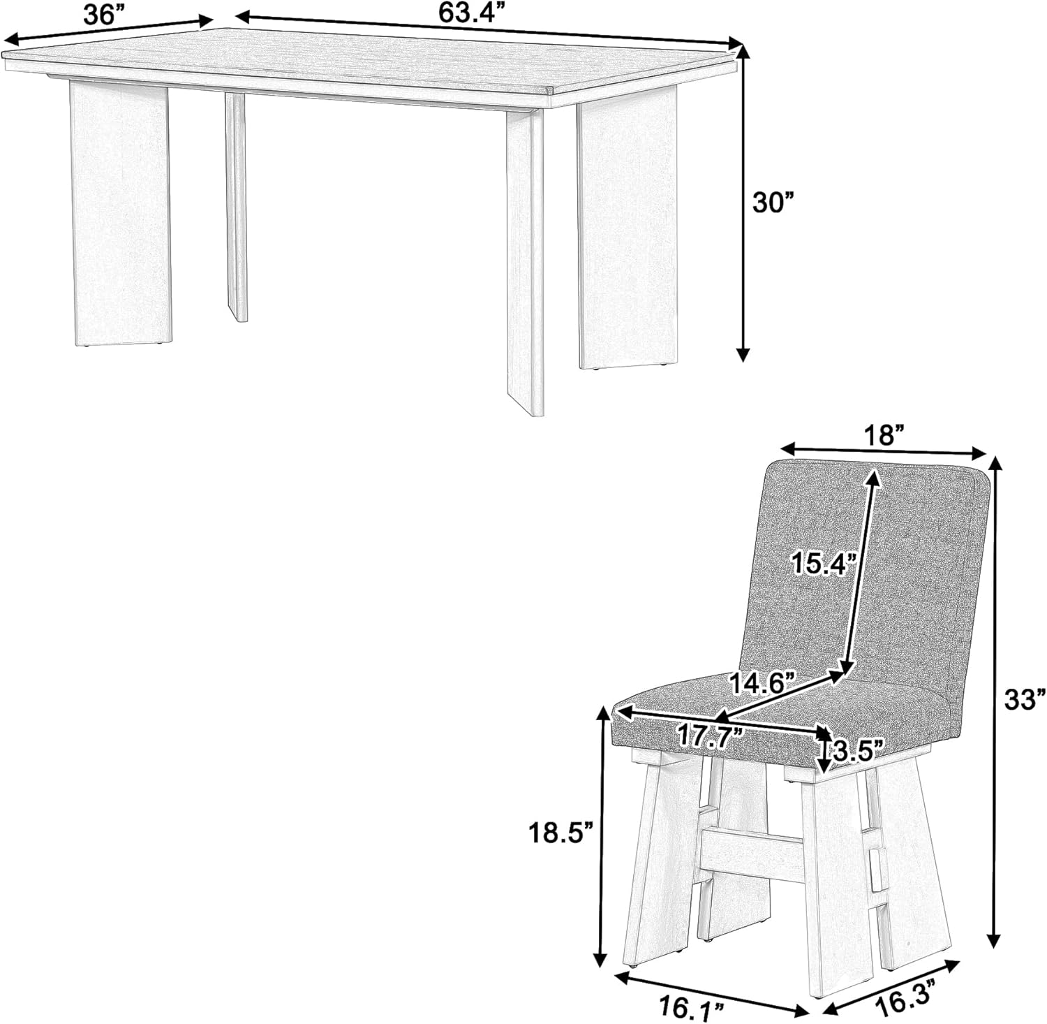 - 【Durable Solid Wood Construction & Modern Design】 This 7-piece dining set is crafted with high-quality solid wood, ensuring both durability and stability for long-lasting use. The table, measuring 63.4x36 inches, is supported by sleek, flaky legs that add a touch of contemporary elegance. The 6 upholstered chairs feature modern designs, combining comfort with style. Whether used for daily meals or special occasions, this set enhances the aesthetic of any dining area.