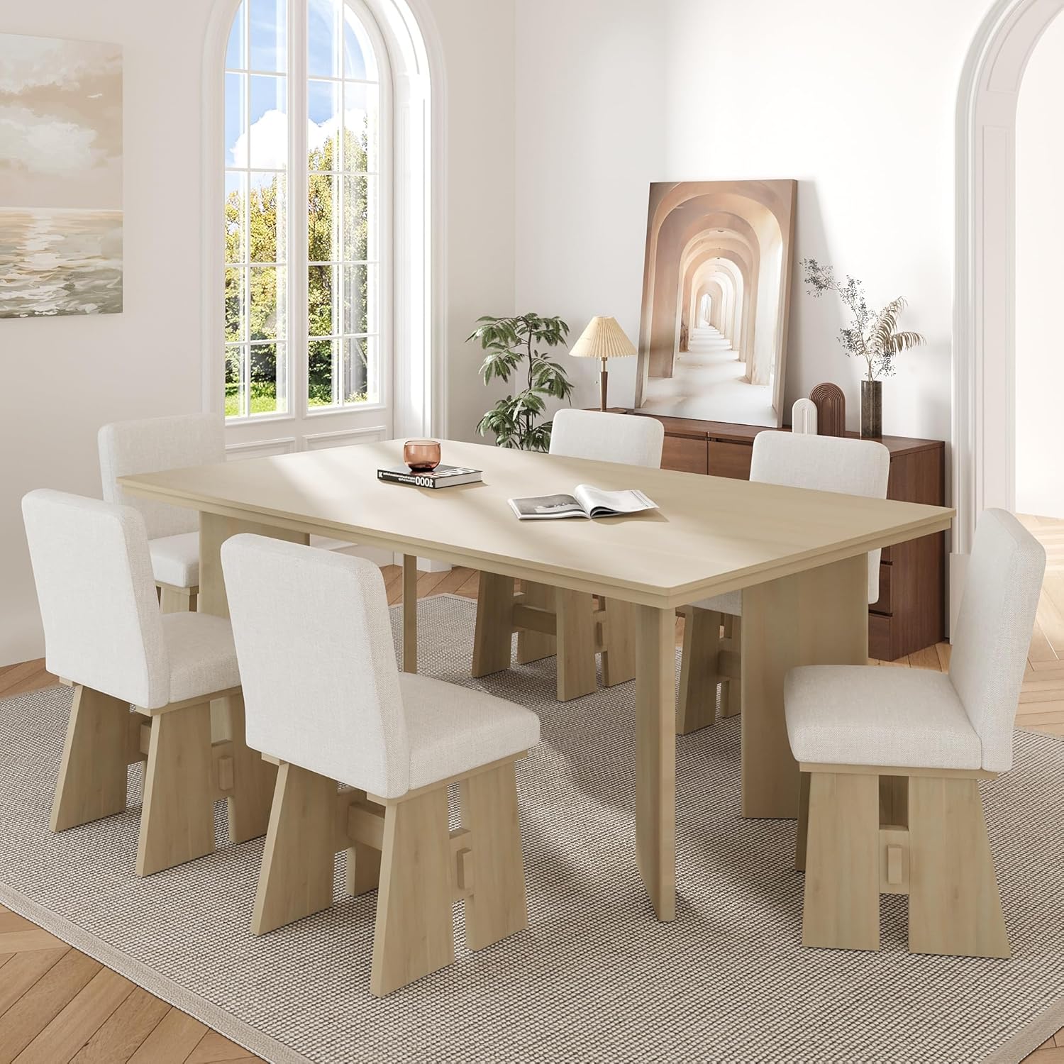 Ball & Cast Modern 7-Piece Dining Table Set with 6 Upholstered Chairs,Wood Tables Sets w/Space-Saving Design,Kitchen Furniture Suitable Big Family Gatherings,Natural