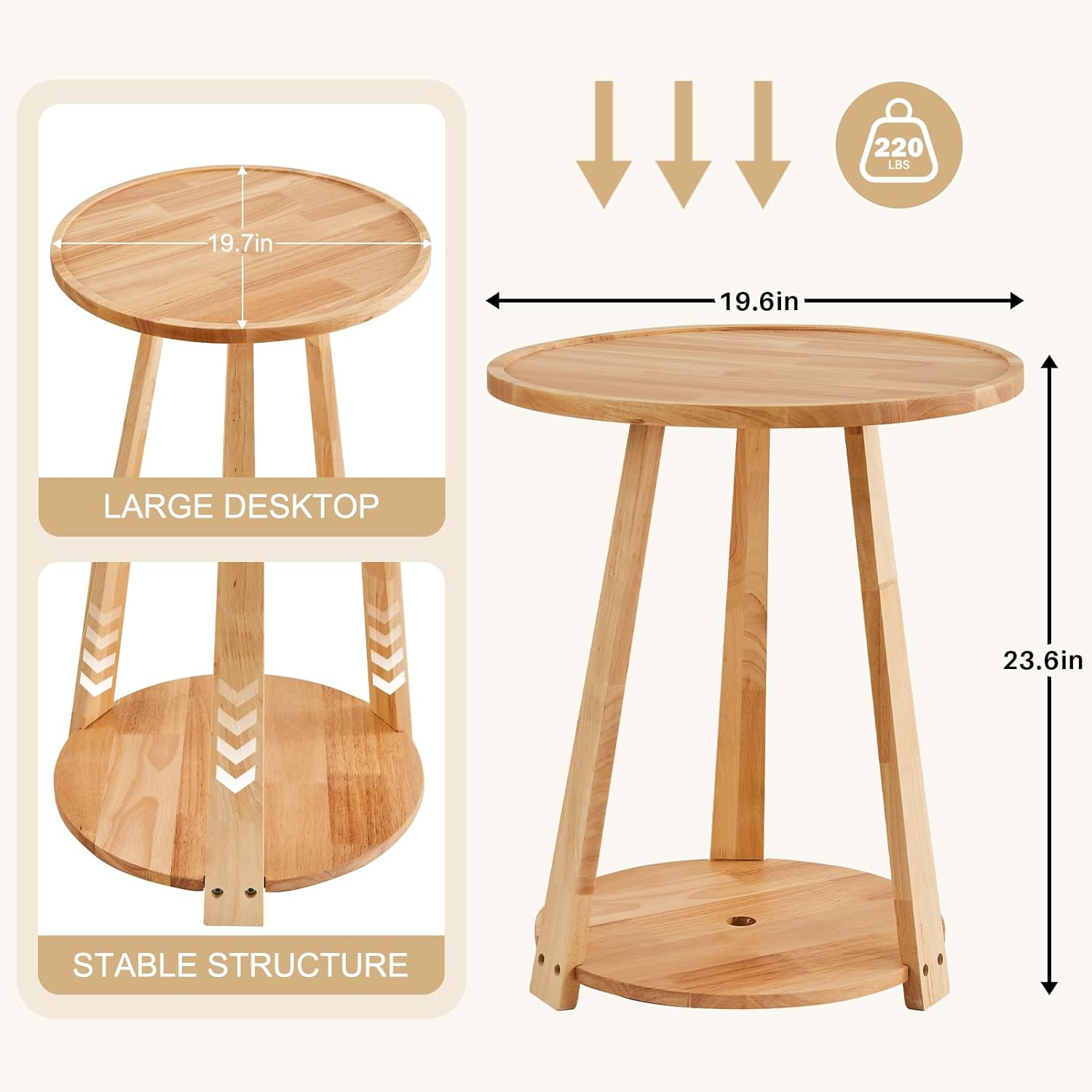 - 【100% Solid Wood Material】This small round end table is built from premium solid rubberwood material, which has longer service life and resists damage, delivering exceptional stability and durability. Additionally, this material emits no harmful odors, creating a more pleasant environment.