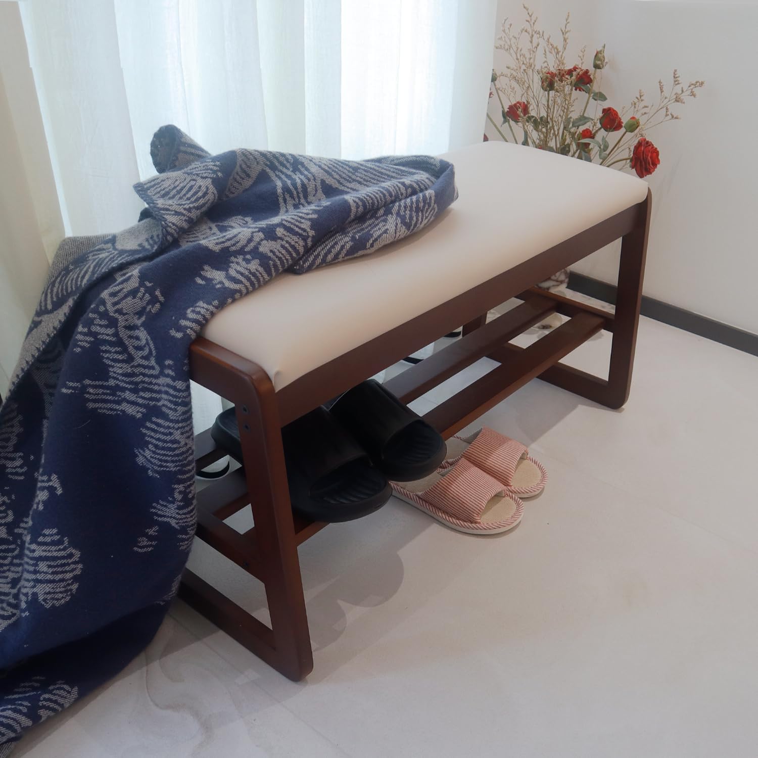 - 【Spacious 2-Tier Storage】 This solid wood shoe bench features a dual-layer design, offering ample space to organize shoes, boots, or other entryway essentials, keeping your home tidy.