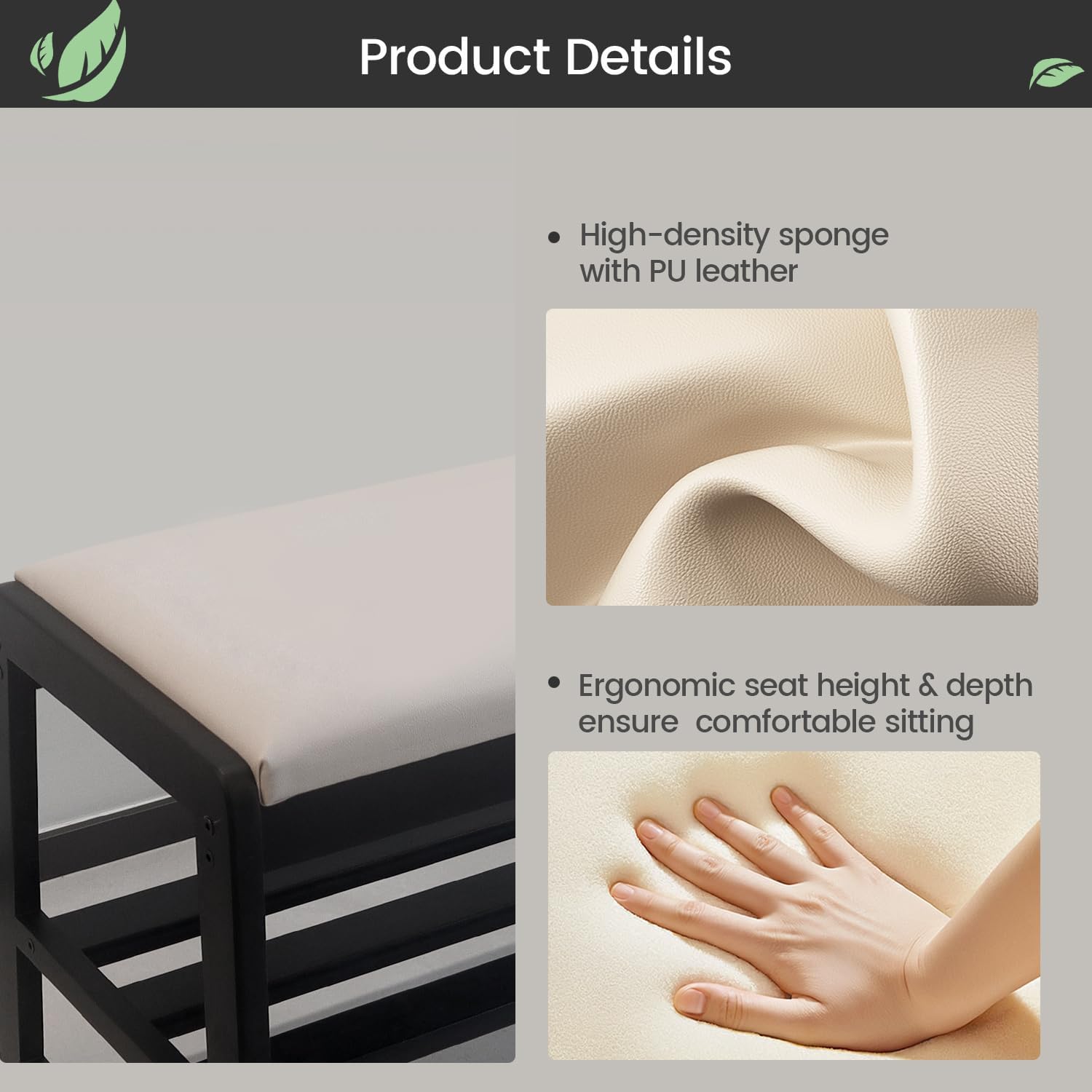 - 【Comfortable Soft Cushion】 The padded seat (4cm / 1.57" thick) provides extra comfort while putting on or taking off shoes, making it both functional and cozy for daily use.