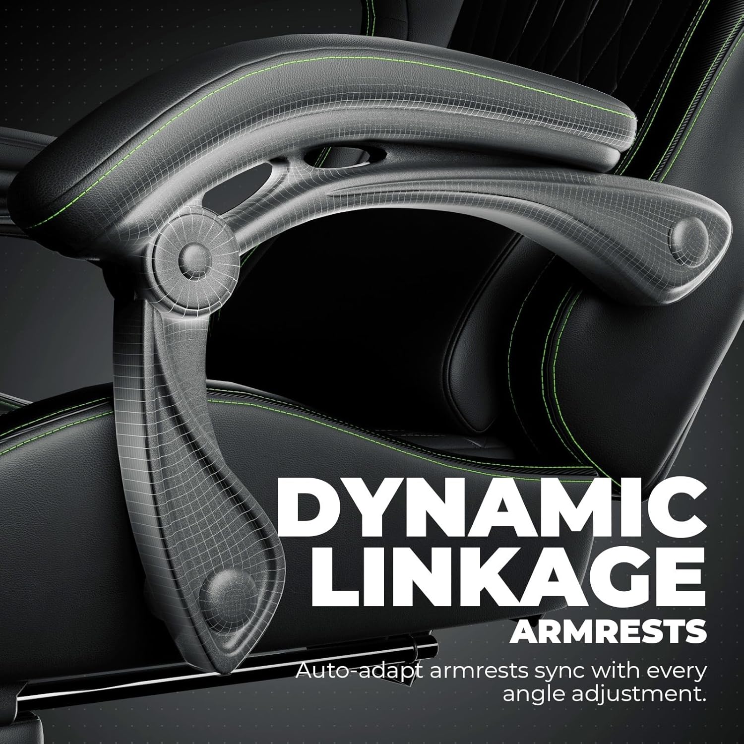 GTPLAYER ACE-PRO Music Gaming Chairs – Built-in Speakers, App Support & Bluetooth Control, Footrest & Pocket, Gamer Chair for Adults, Black & Green Stitch
