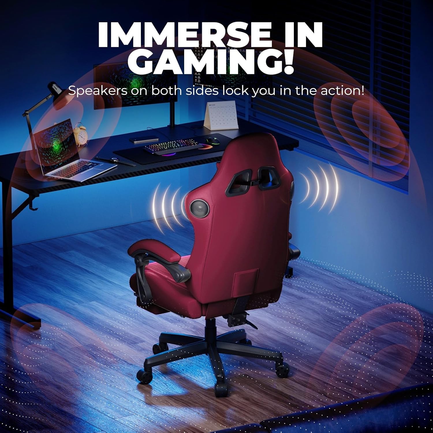 GTPLAYER ACE-PRO Music Gaming Chairs – Built-in Speakers, App Support & Bluetooth Control, Footrest & Pocket, Gamer Chair for Adults, Wine Red