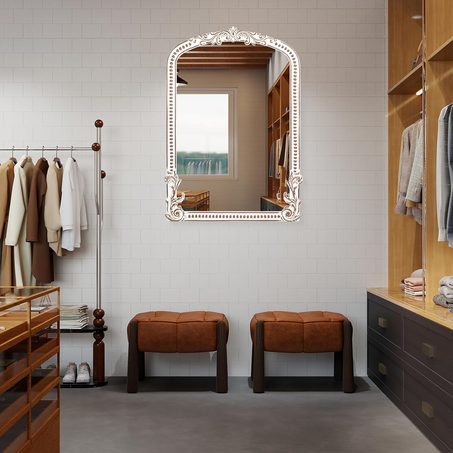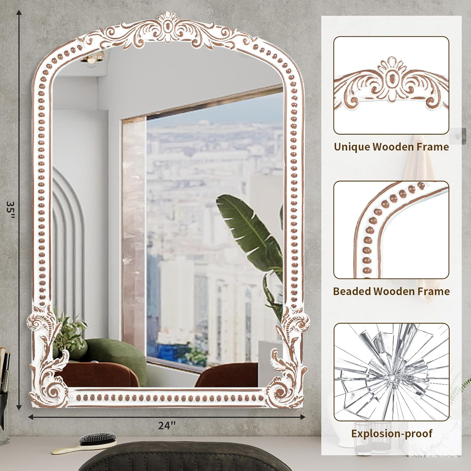 25x35 Inch Baroque Arched Wall Mirror Wooden, Rustic Farmhouse Decorative Mirrors for Fireplace, Entryway, Living Room, Bedroom, Bathroom