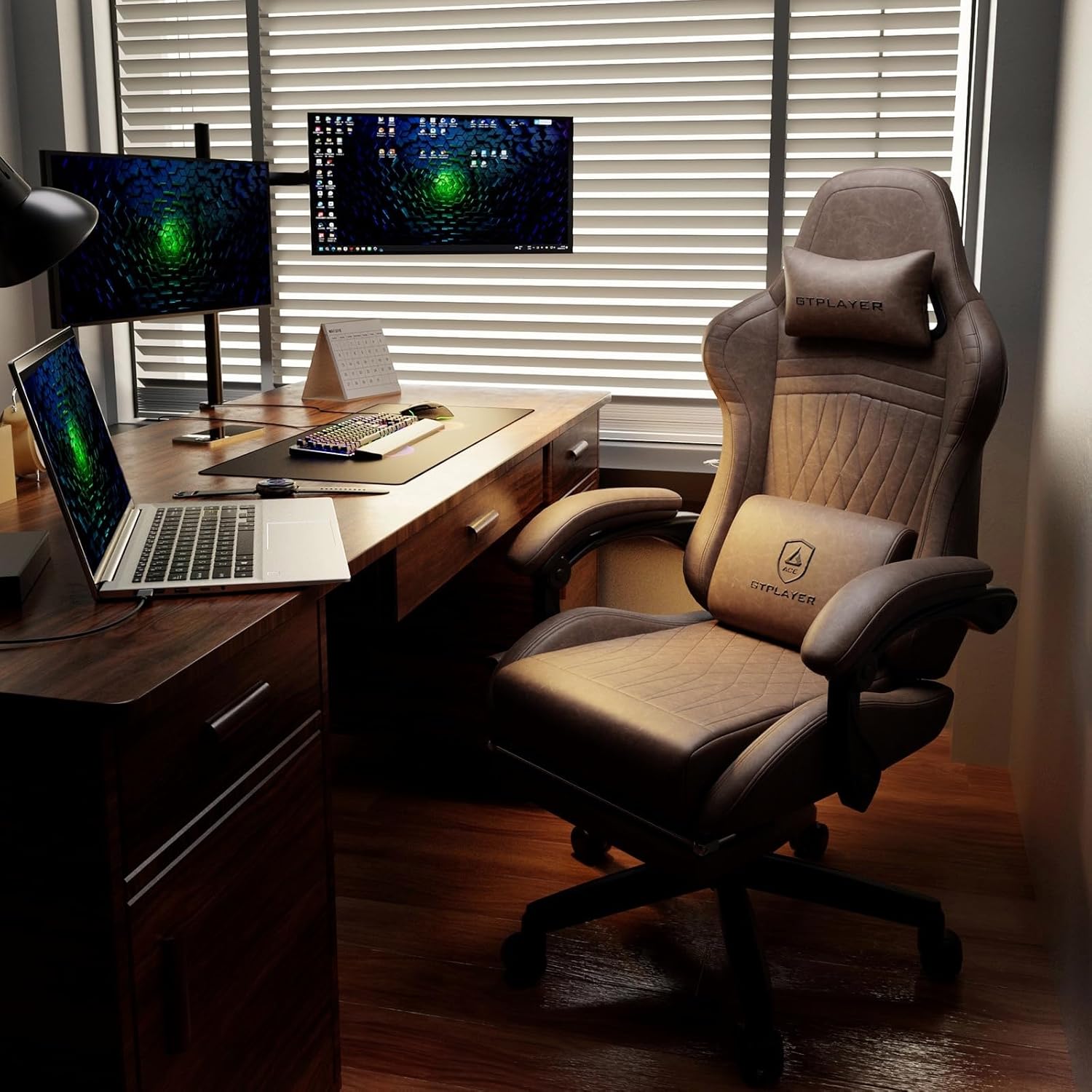 GTPLAYER ACE-PRO Music Gaming Chairs β Built-in Speakers, App Support & Bluetooth Control, Footrest & Pocket, Gamer Chair for Adults, Light Brown