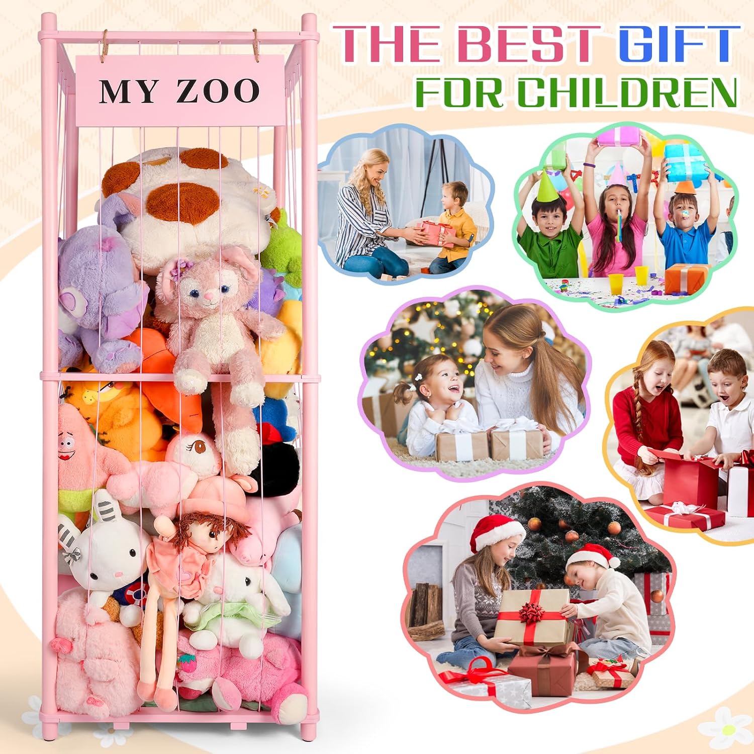 - MAXIMIZE STORAGE SPACE: This vertical stuffed animal storage solution helps you neatly organize plush toys while saving floor space. Its multi-tier design ensures maximum capacity, making it perfect for playrooms, nurseries, and bedrooms.