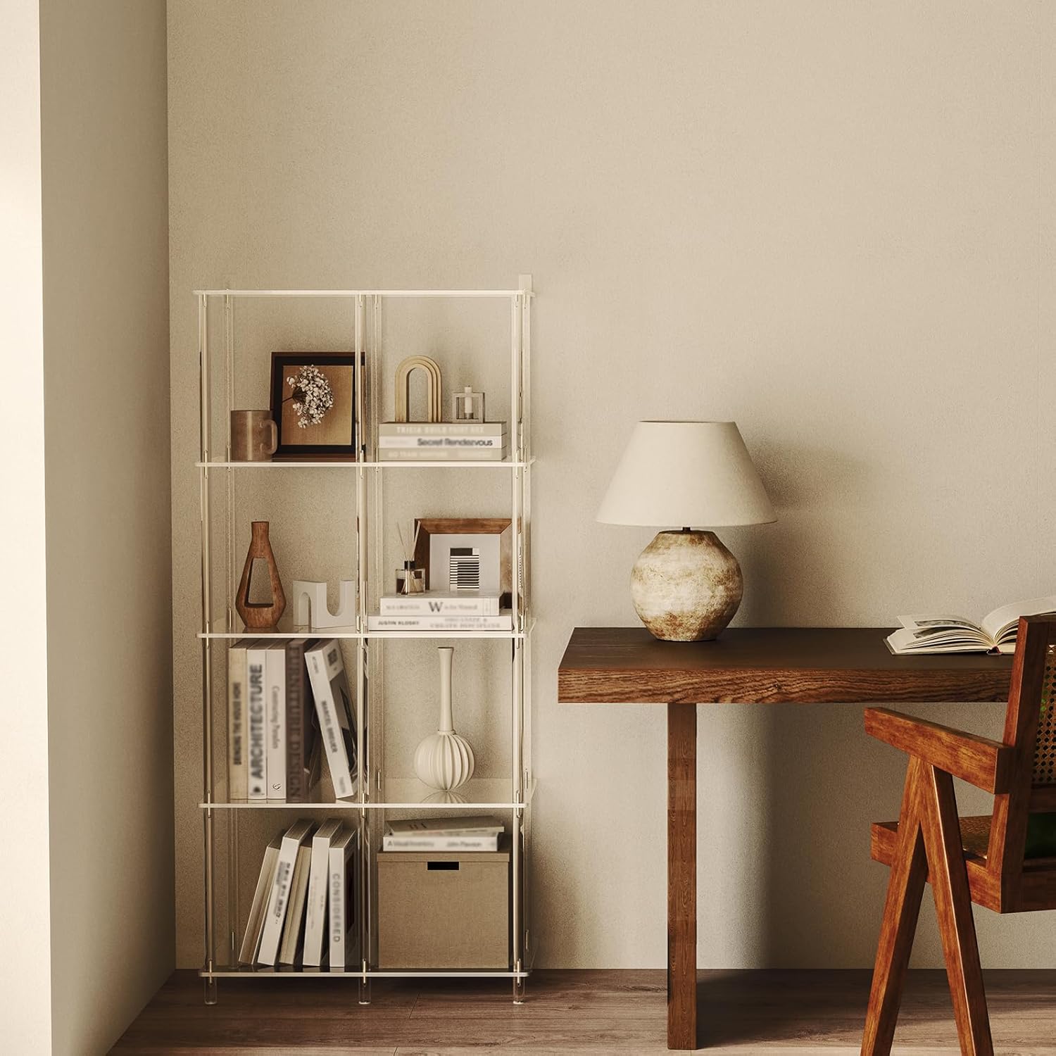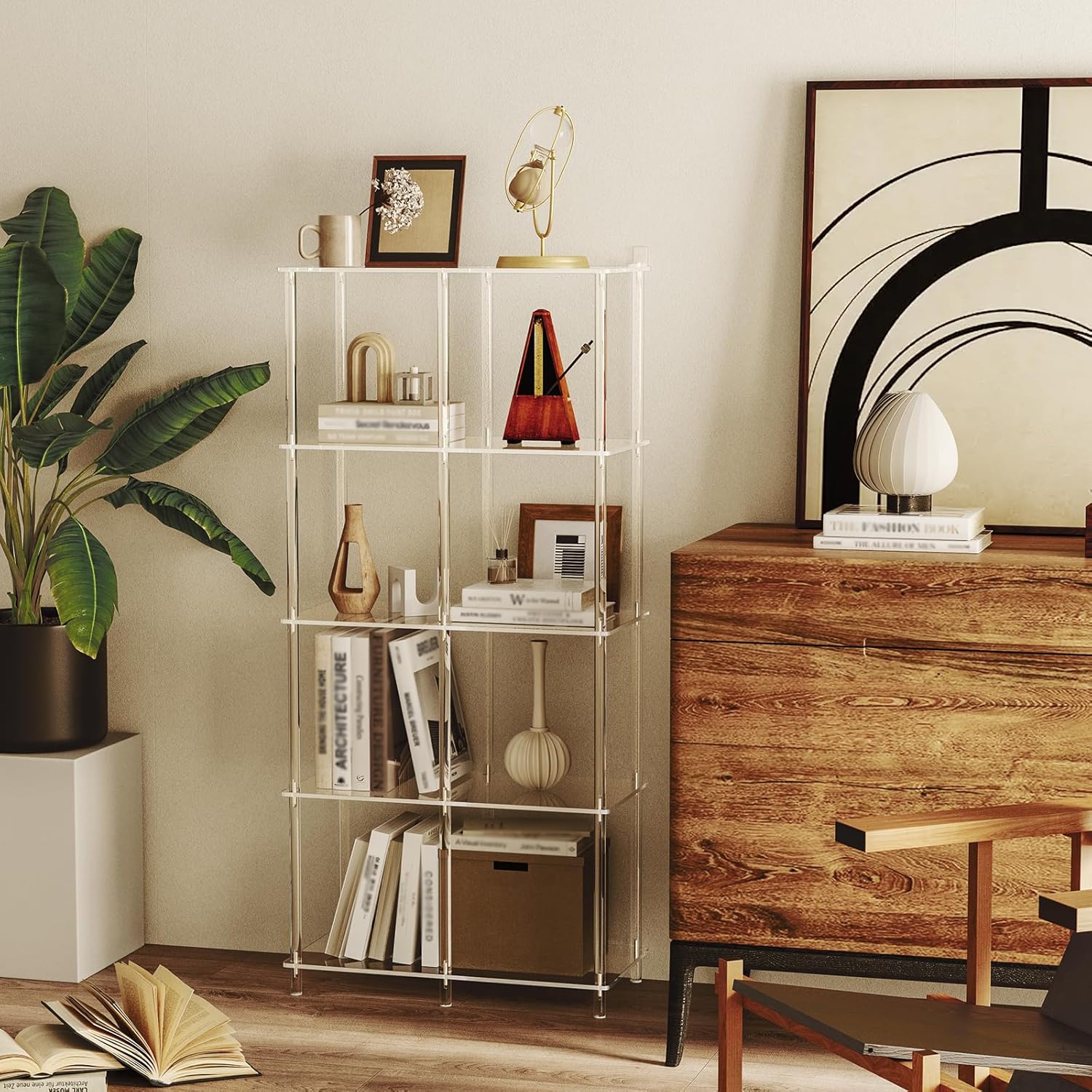 5-Tier Acrylic Bookshelf with 8 Cube Storage, Clear Bookcase for Home Office, Mordern, Multifunctional Open Book Shelves for Living Room, Bedroom, 50.8" H, Easy Assembly