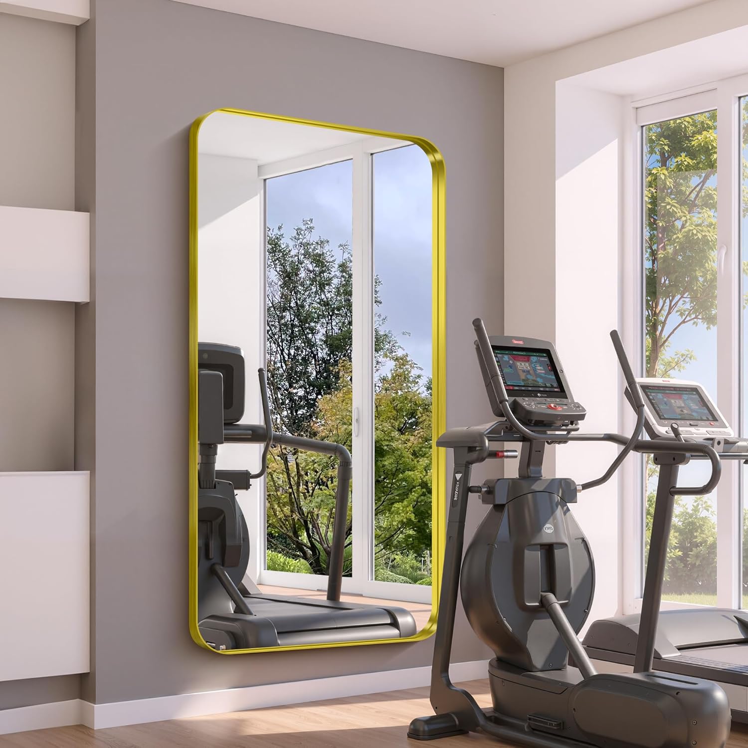 FORBATH 72x36 Inch Oversized Bathroom Mirror for Double Sinks, Brushed Gold Deep Frame Full Length Wall Mirror with Rounded Corners, Anti-Rust Tempered Glass(Horizontal/Vertical)