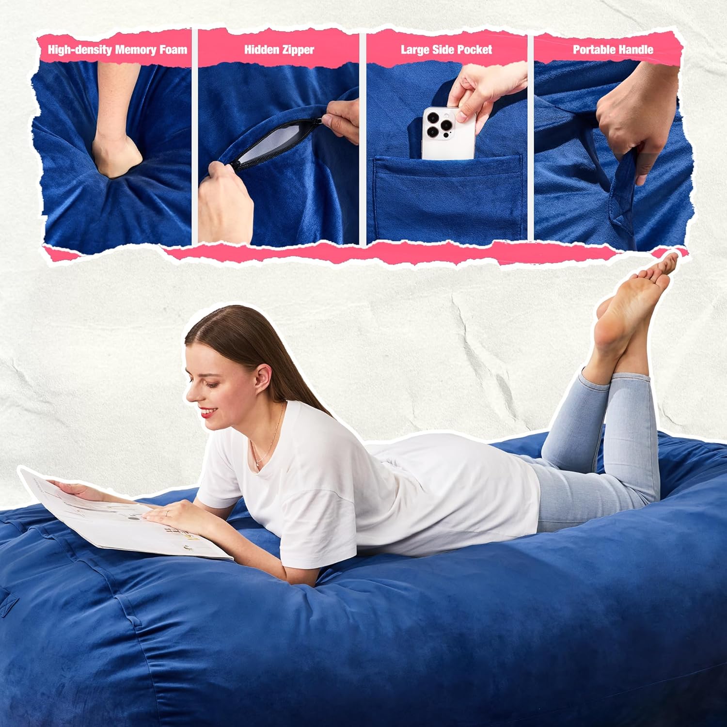 - Ready-to-Use Design: No need for assembly! Simply unbox, let the giant bean bag chair for adults expand over 48 hours, and it's ready to use. If the foam feels uneven after extended use, a few vigorous shakes will redistribute it, restoring the bean bag chair with filler included to its plump, inviting form.