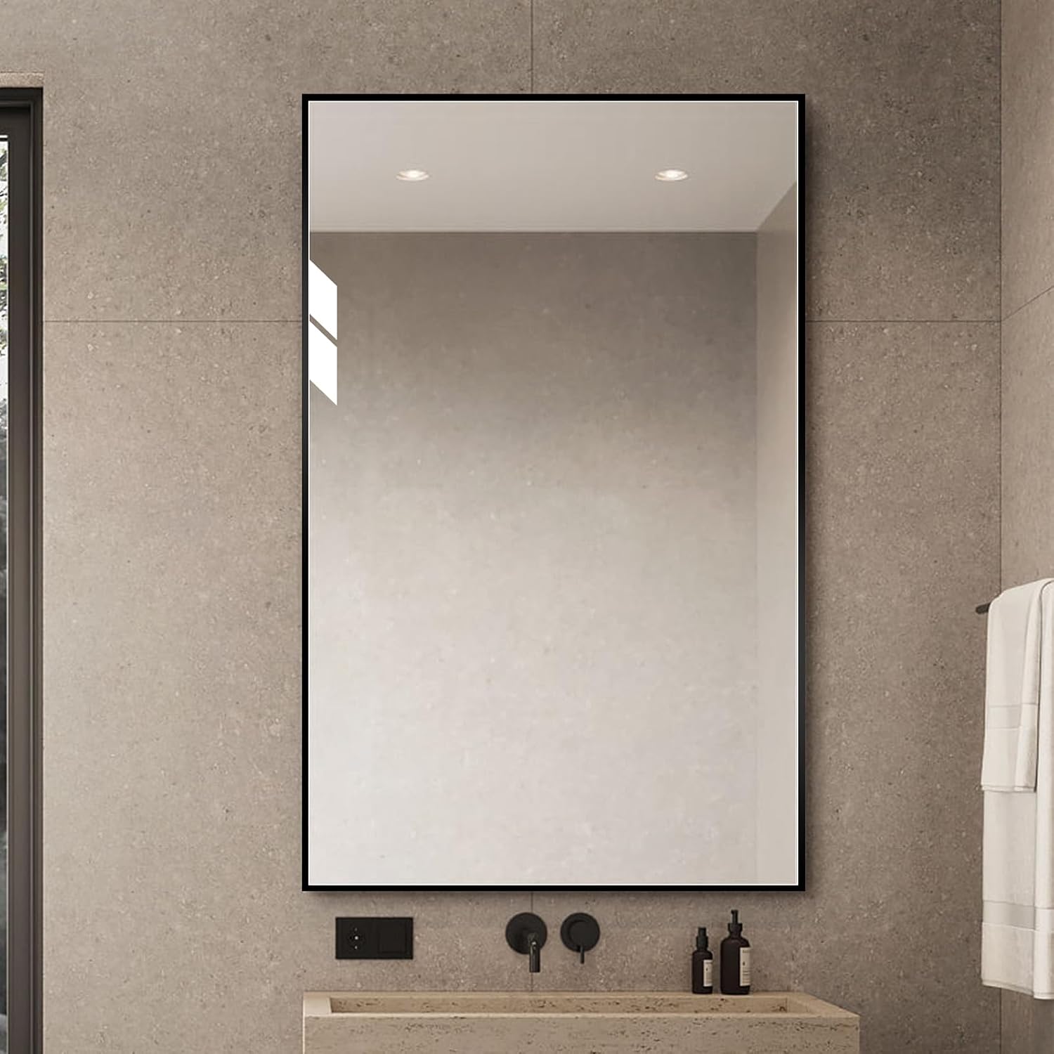 Black Bathroom Mirror for Wall, Rectangle Mirrors with Metal Frame, Modern Vanity Wall Mirror Decor for Entryway Hangs, Bathroom Living Room Horizontal or Vertical (Black, 30" L x 24" W)